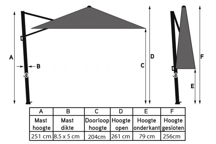 De Challenger T2 zweefparasol is voorzien van een voetpedaal waarmee deze 360 graden kan worden gedraaid. Zo kan je dus altijd in de schaduw zitten zonder de parasol te hoeven verplaatsen. Doormiddel van het speciale T2 systeem kan de parasol naar links en rechts worden gekanteld. Hierdoor kan je perfect inspelen op de stand van de zon. Daarnaast kan de parasol ook achterwaarts worden gekanteld wat erg handig is bij een laagstaande zon.
