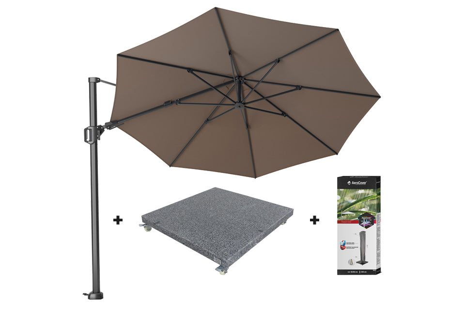 Platinum Challenger T2 3.5m. rond parasol Havanna Taupe met voet en hoes
