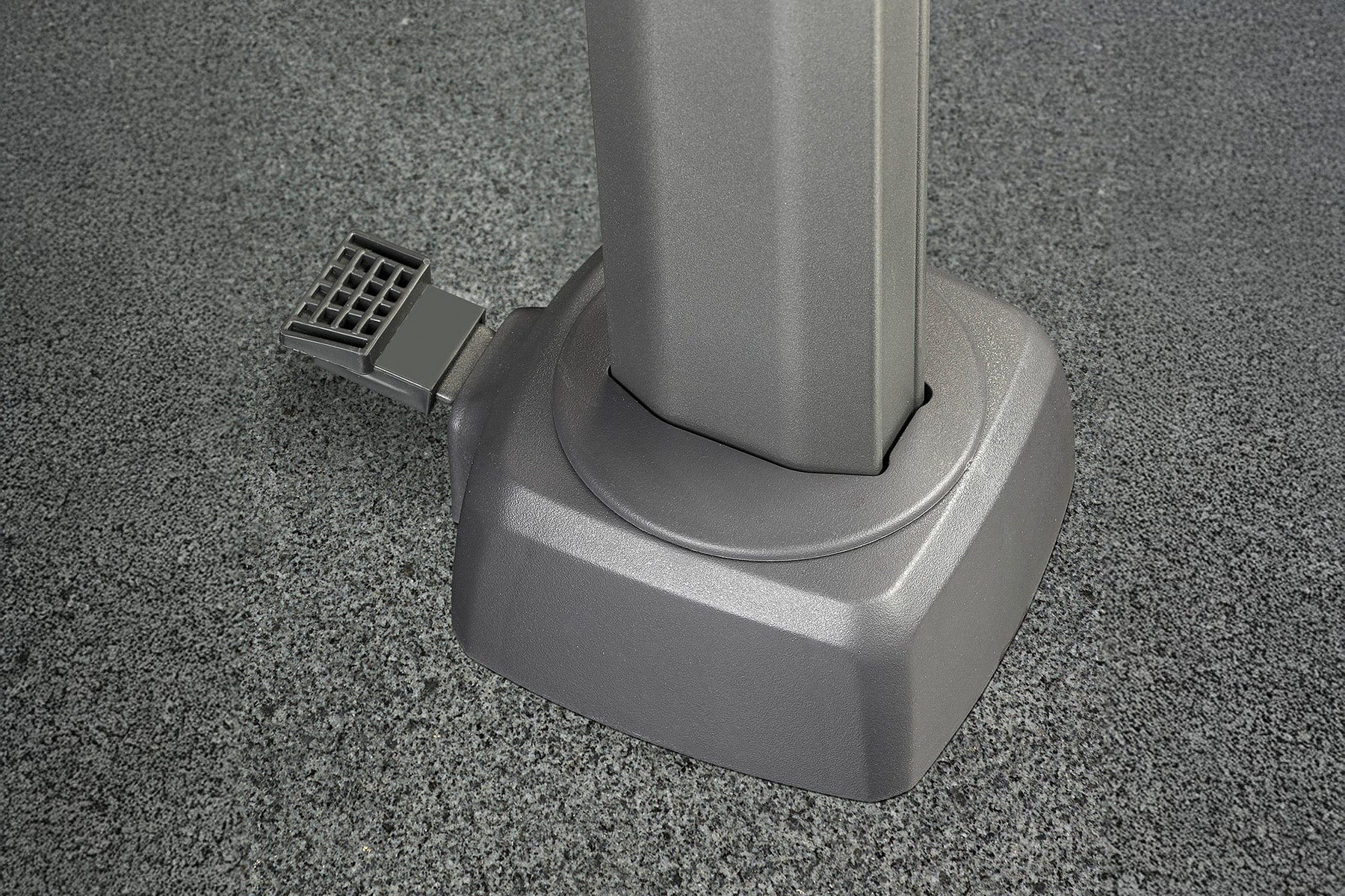 De Challenger T1 parasol wordt geleverd zonder parasolvoet en hoes, maar deze zijn eenvoudig bij ons te bestellen. Voor deze grote parasol raden we een voet van 120 kg aan om stabiliteit te garanderen. Je kunt ook kiezen voor een ingraafvoet, die in het terras wordt verwerkt en geen ruimte inneemt.