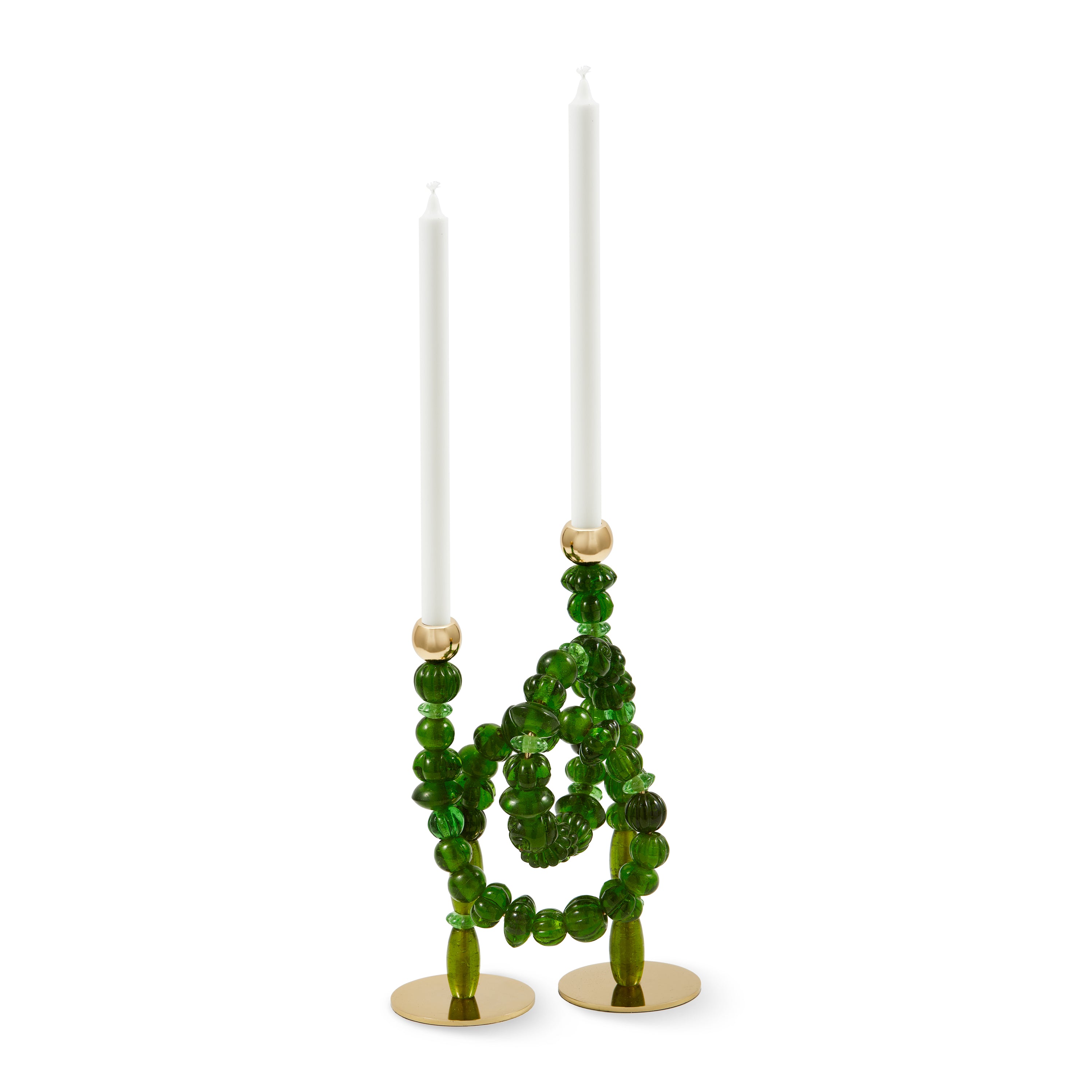 POLSPOTTEN Beads Kandelaar H 38 cm - Donkergroen