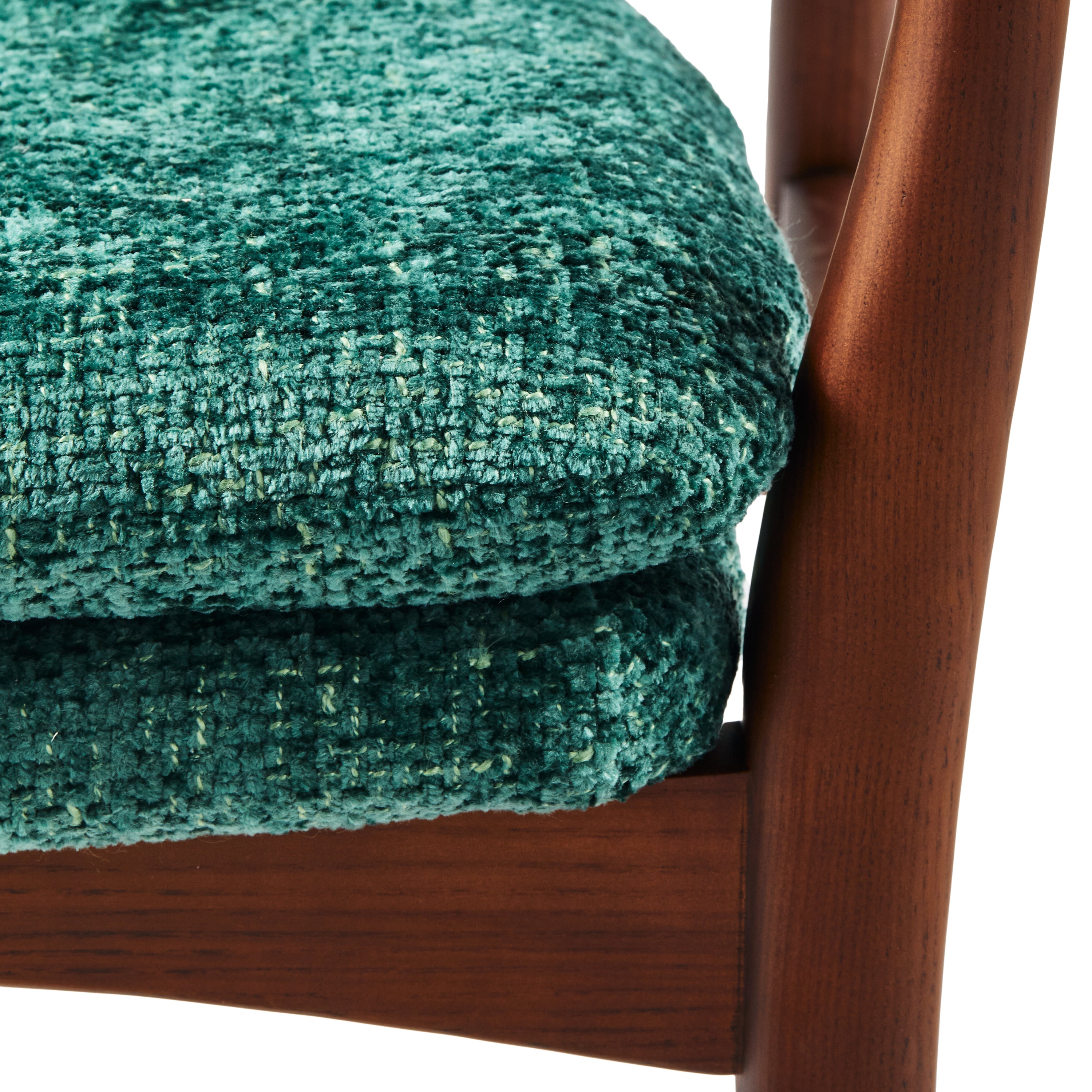 - De combi van hout en textiel geeft de stoel een retro tintje