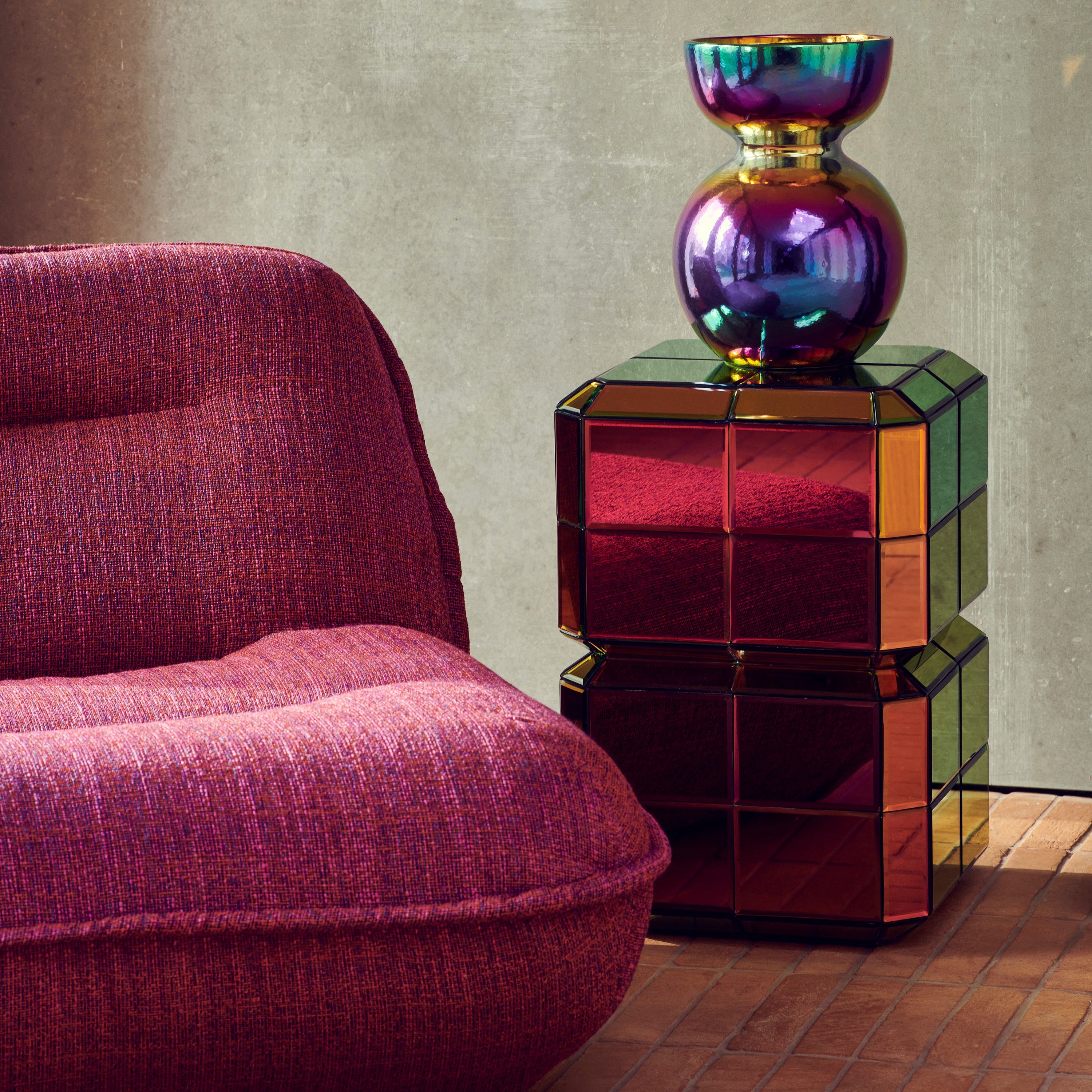 - Gemaakt van gekleurd spiegelglas