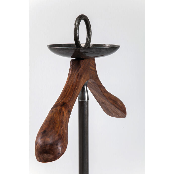 - Met een brede, stevige hanger van gelakt mangohout en een ronde broekstang.
