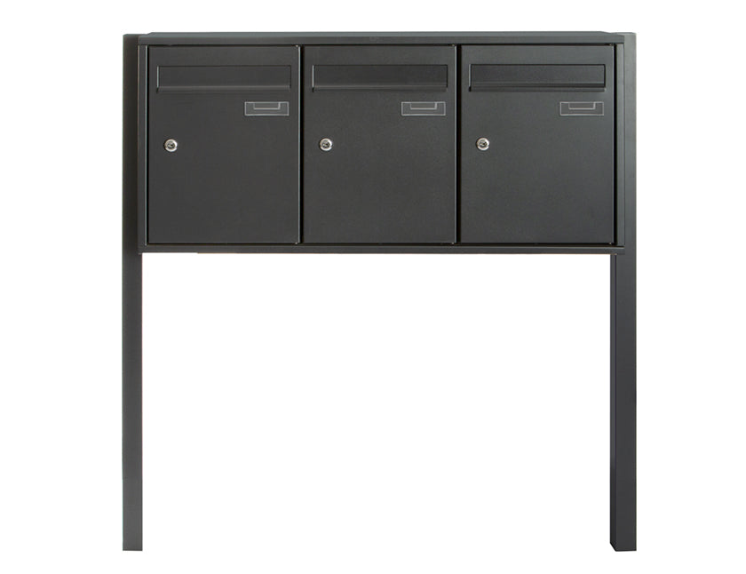 -Design look mat antraciet -Zeer ruime briefopening geschikt voor A4 en dagbladen -Inwerp vooraan: 23 x 3 cm -Cilinderslot met twee sleutels -Montagemateriaal inbegrepen -H40,3 x B92,4 x D16,3 cm (met staander totaal 170 cm hoog)