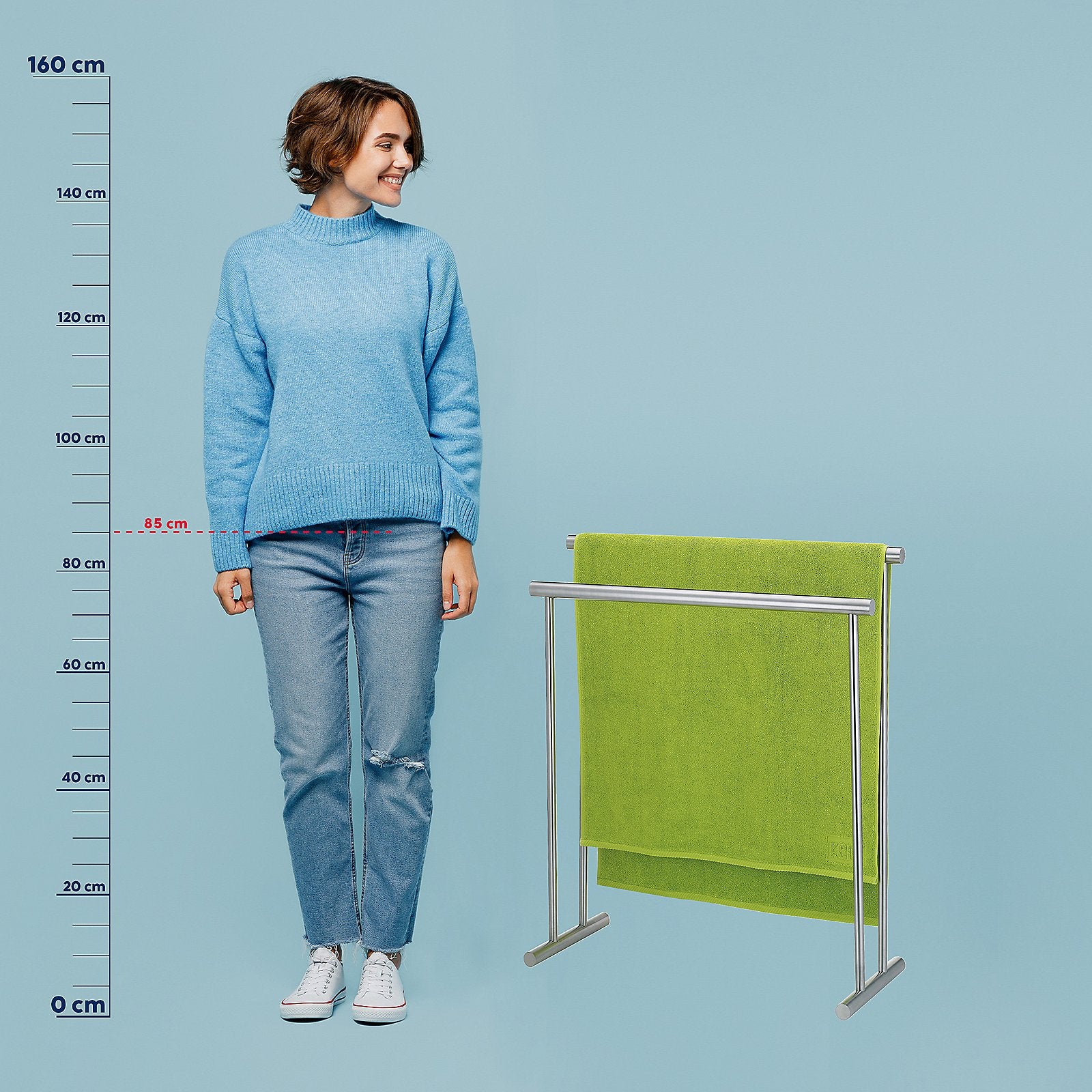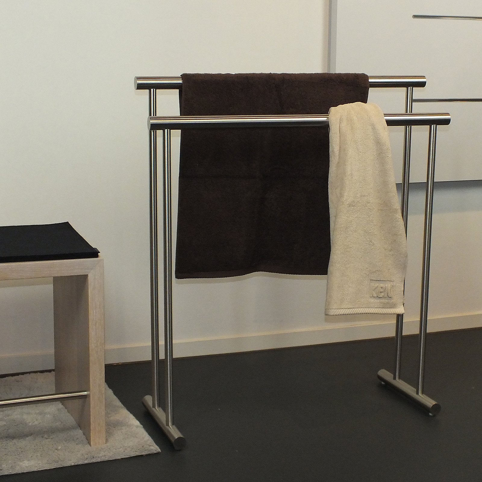 Het geraffineerde design van het Priamo handdoekrek wordt gecombineerd met top kwaliteit vakmanschap. Het rek is gemaakt van edelstaal en is zo gemaakt dat de schroeven niet zichtbaar zijn. De 2 handdoek stangen bevinden zich op verschillende niveau's zodat je overal goed bij kunt en de handdoeken goed kunnen drogen. De onderzijde van het rek is voorzien van rubberen poten zodat hij stevig blijft staan. Het rek is verkrijgbaar in 2 verschillende maten.