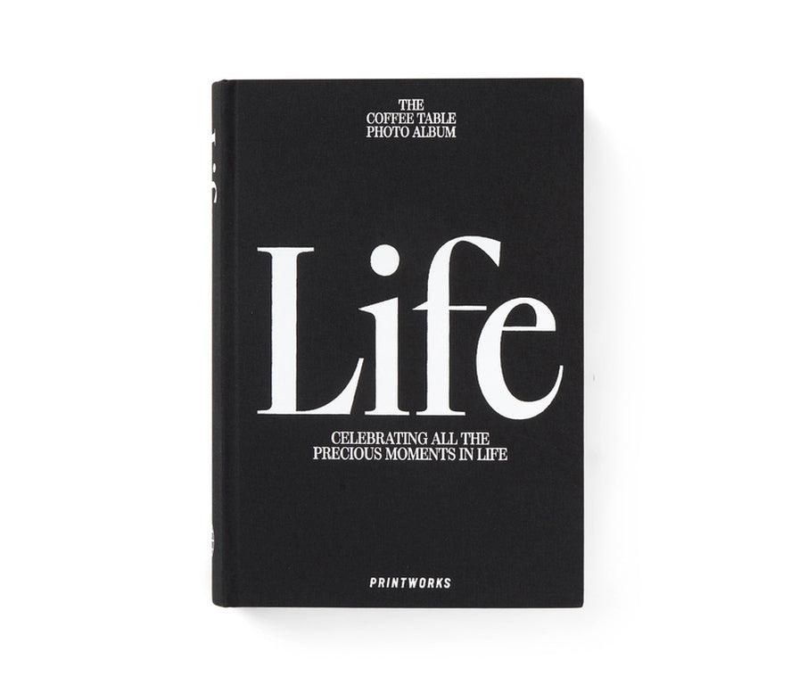 Het zwarte Life fotoalbum van Printworks doet meer denken aan een kunstboek dan aan een traditioneel fotoalbum. Door deze te gebruiken als koffietafelboek heb je altijd je dierbare herinneringen dichtbij en voeg je ook een stijlvol accent toe aan je interieur. Wanneer het boek gesloten is, ziet het eruit als een elegant koffietafelboek, maar als je het opent zie je 80 off-white pagina's van hoogwaardig fotopapier. Het fotoalbum biedt plaats aan 160 horizontale foto's met een maximale afmeting van 11x15 cm. De foto's kunnen gemakkelijk worden bevestigd met behulp van foto stickers of foto hoekjes.