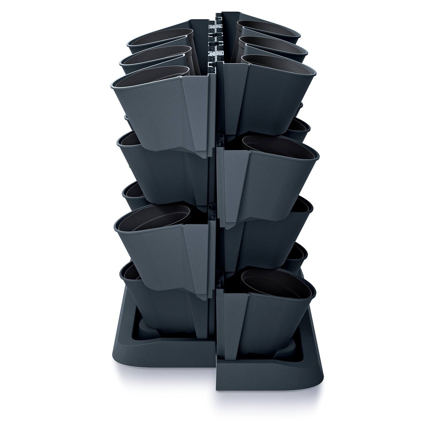 Creeer uw eigen verticale tuin met dit modulaire staande kunststof plantenpotten systeem. Het modulaire systeem staat toe de potten middels verschillende configuraties te monteren. Dankzij het doorstroomde irrigatiesysteem worden de planten gelijkmatig van water voorzien. In een set zitten 12 plantenpotten. Indien u twee sets neemt, kunt u deze tegen elkaar aan bevestigen.