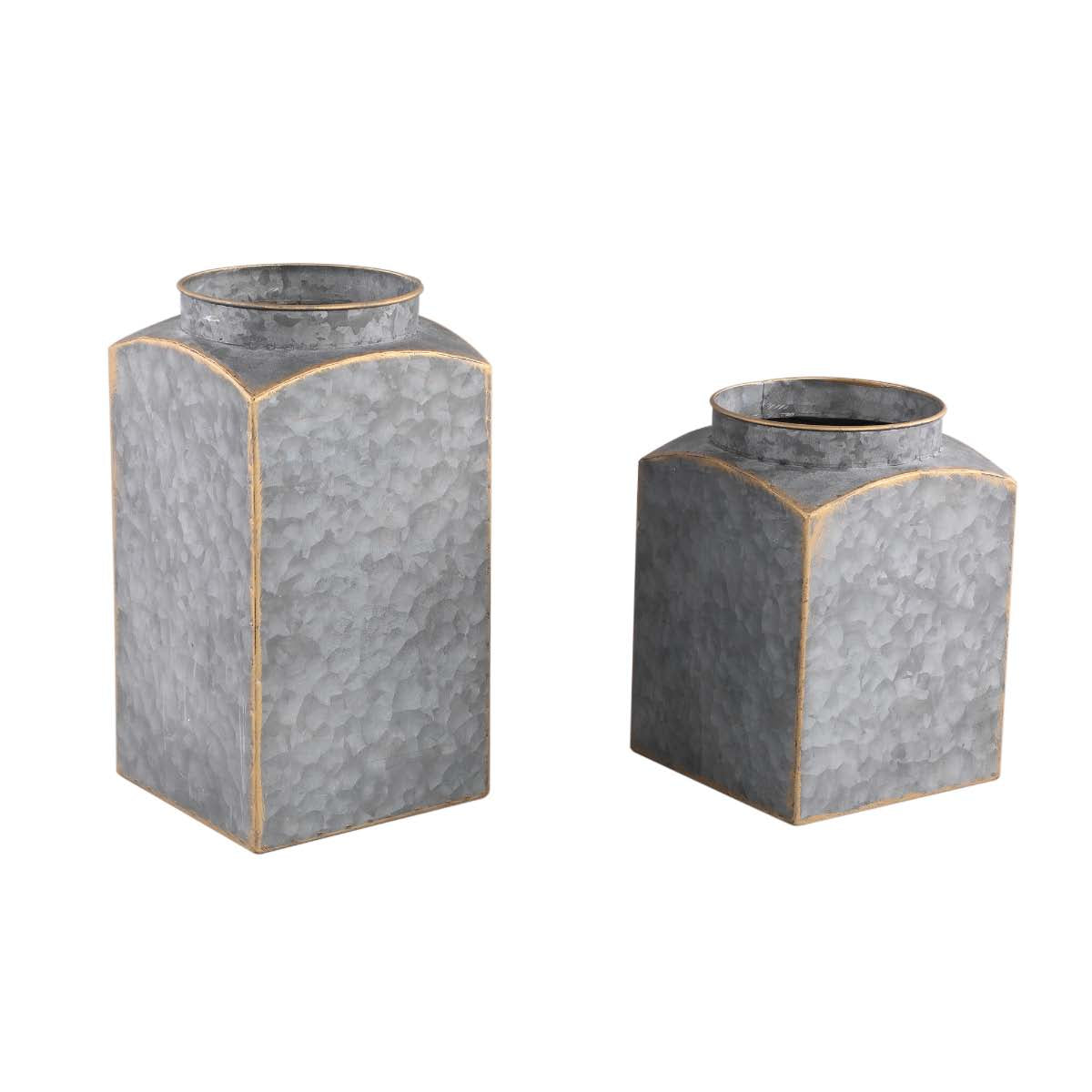 PTMD Arandi Rechthoekige Bloempot - 12x12x27 cm - Set van 2 - Grijs