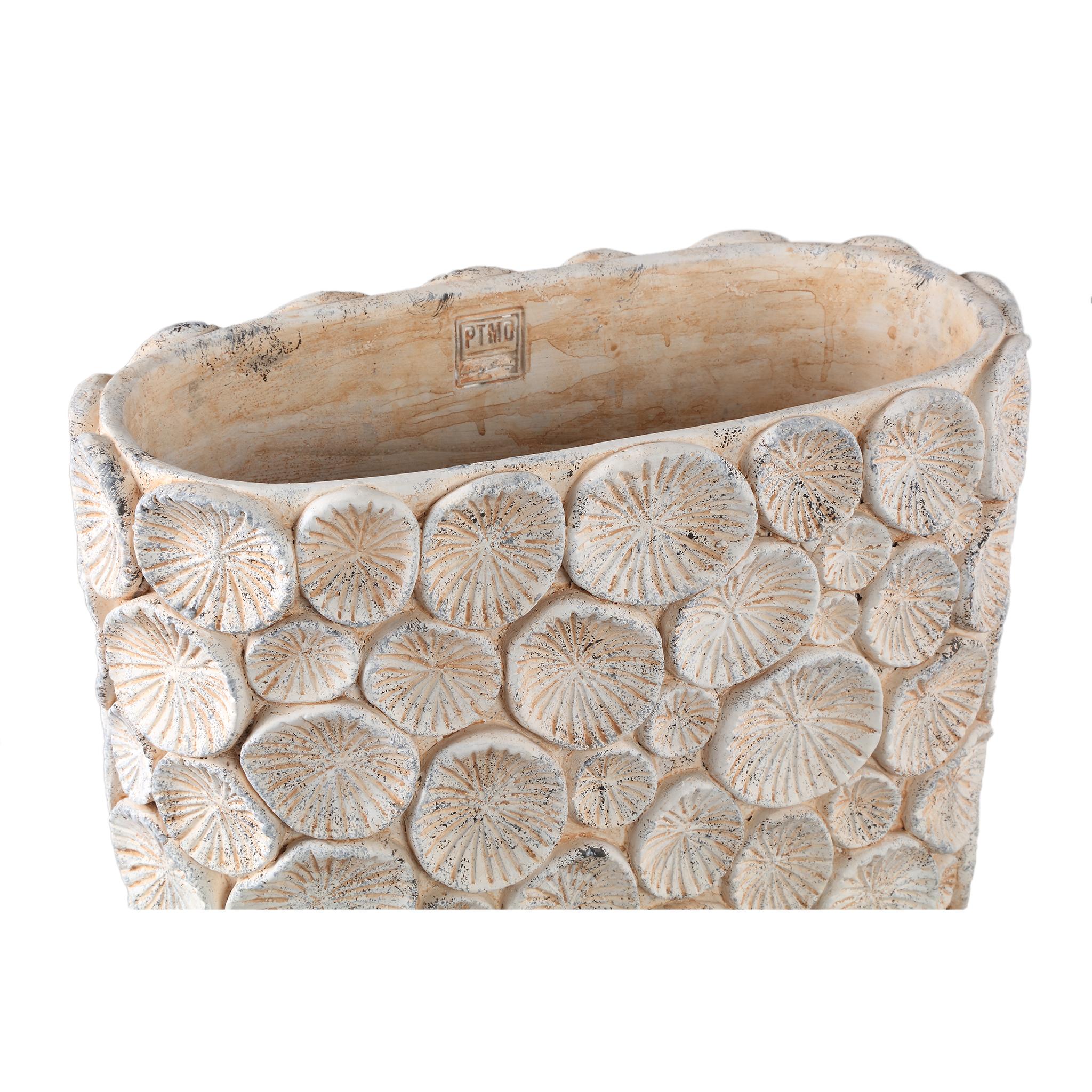 Met zijn verfijnde crème kleur, speelse coral-accenten en robuuste cementconstructie is de PTMD Ayisy Cream Oval Cement Pot with Coral L een ideale keuze voor iedereen die op zoek is naar een stijlvolle en functionele pot die de schoonheid van planten benadrukt en tegelijkertijd een decoratieve functie vervult in je interieur of tuin.