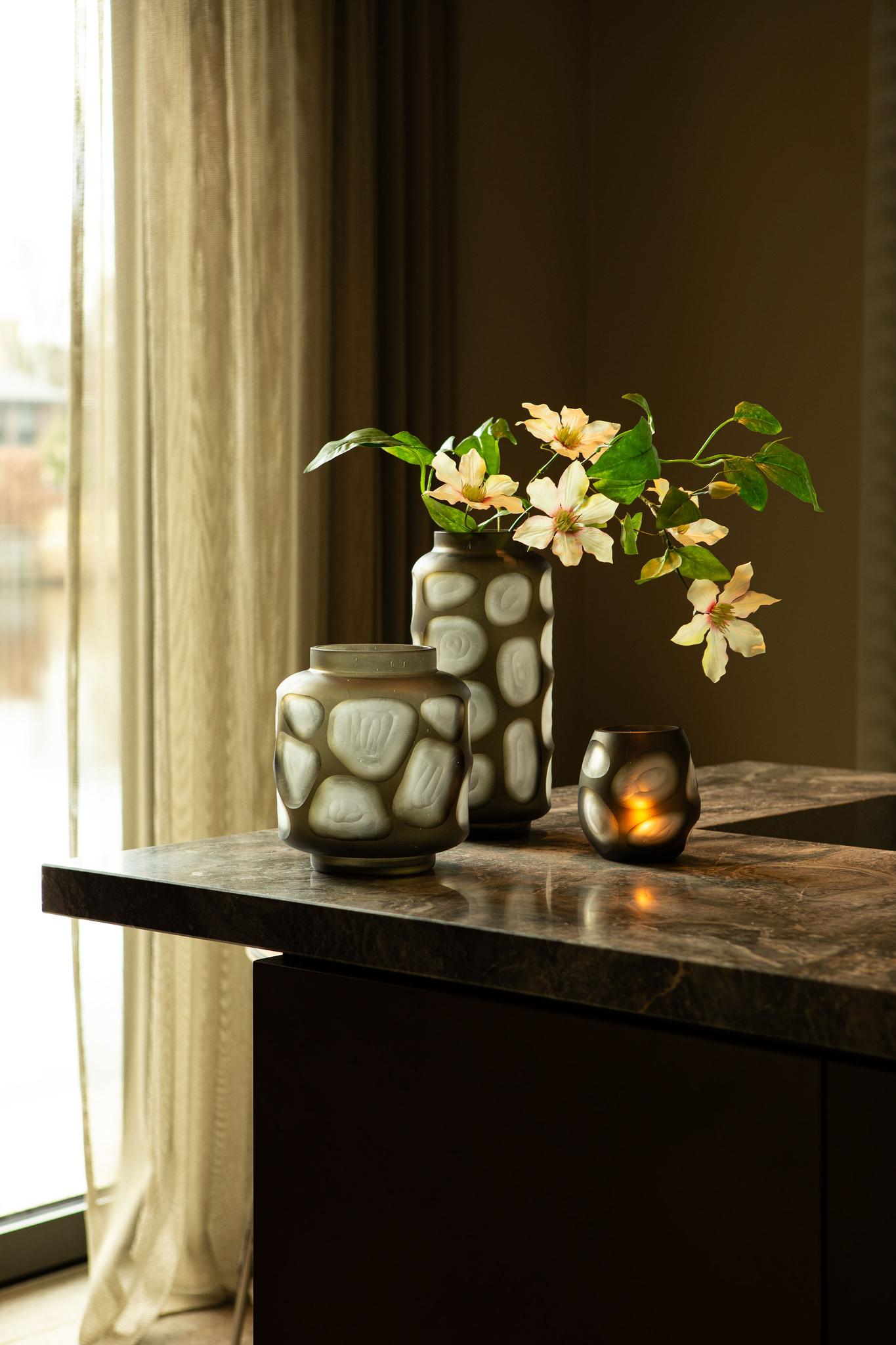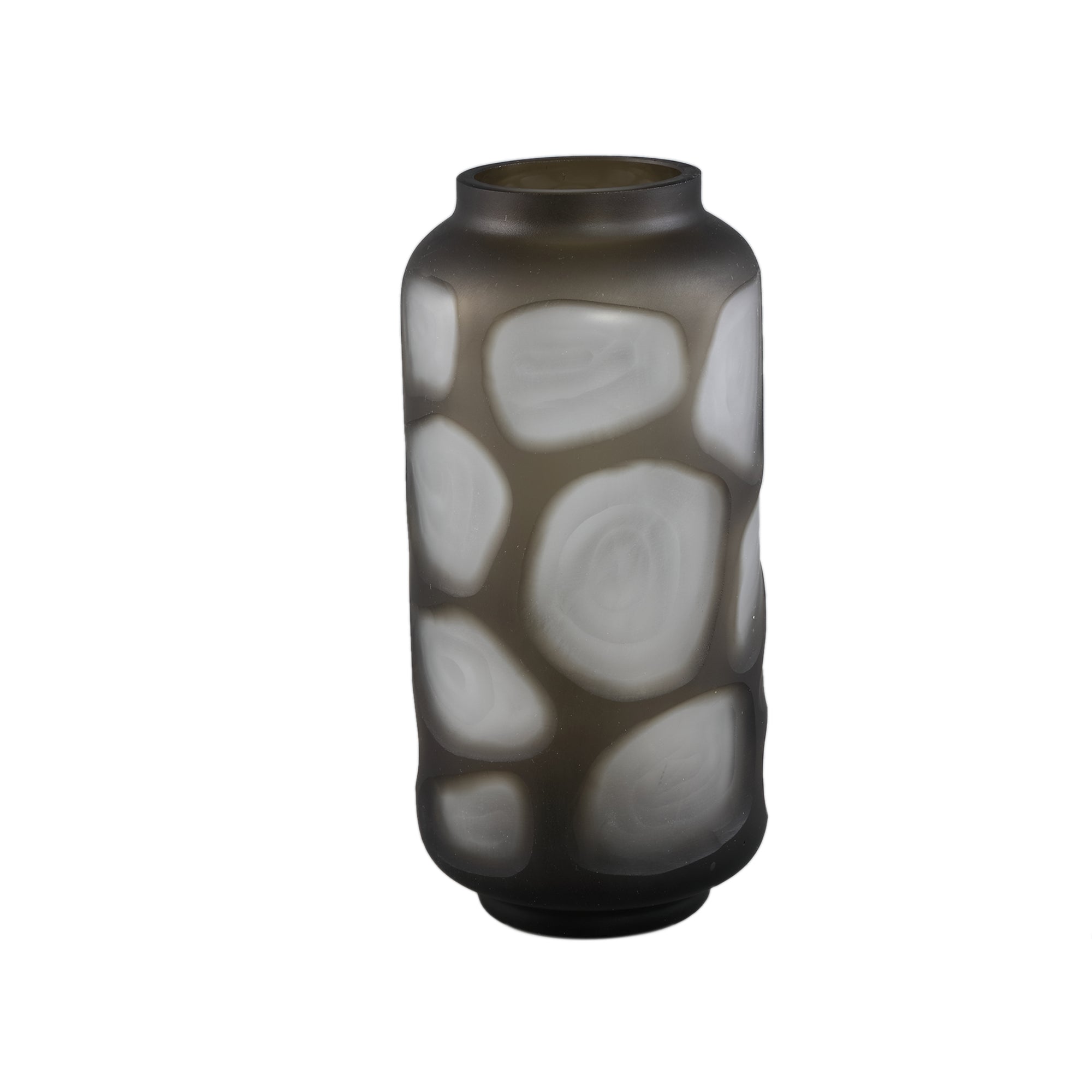 PTMD Azize Green Carved Glass Round Vase On Base L
