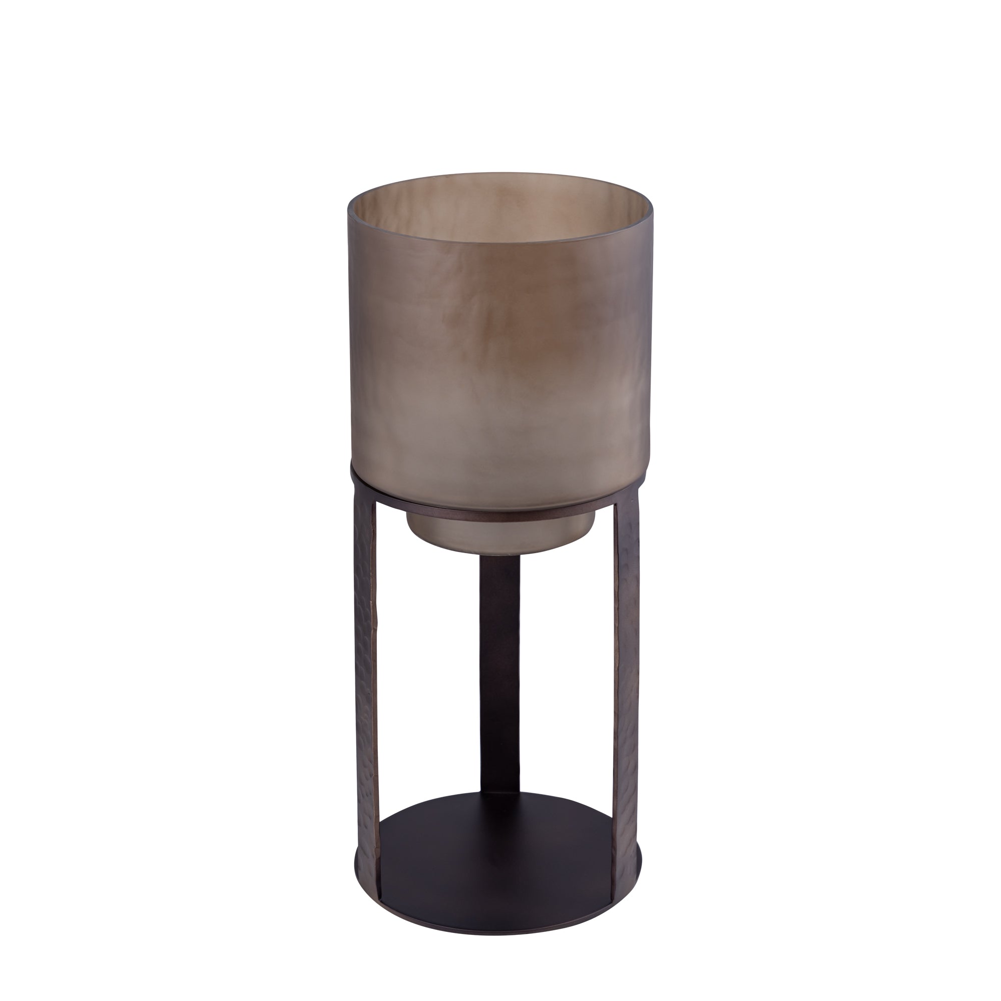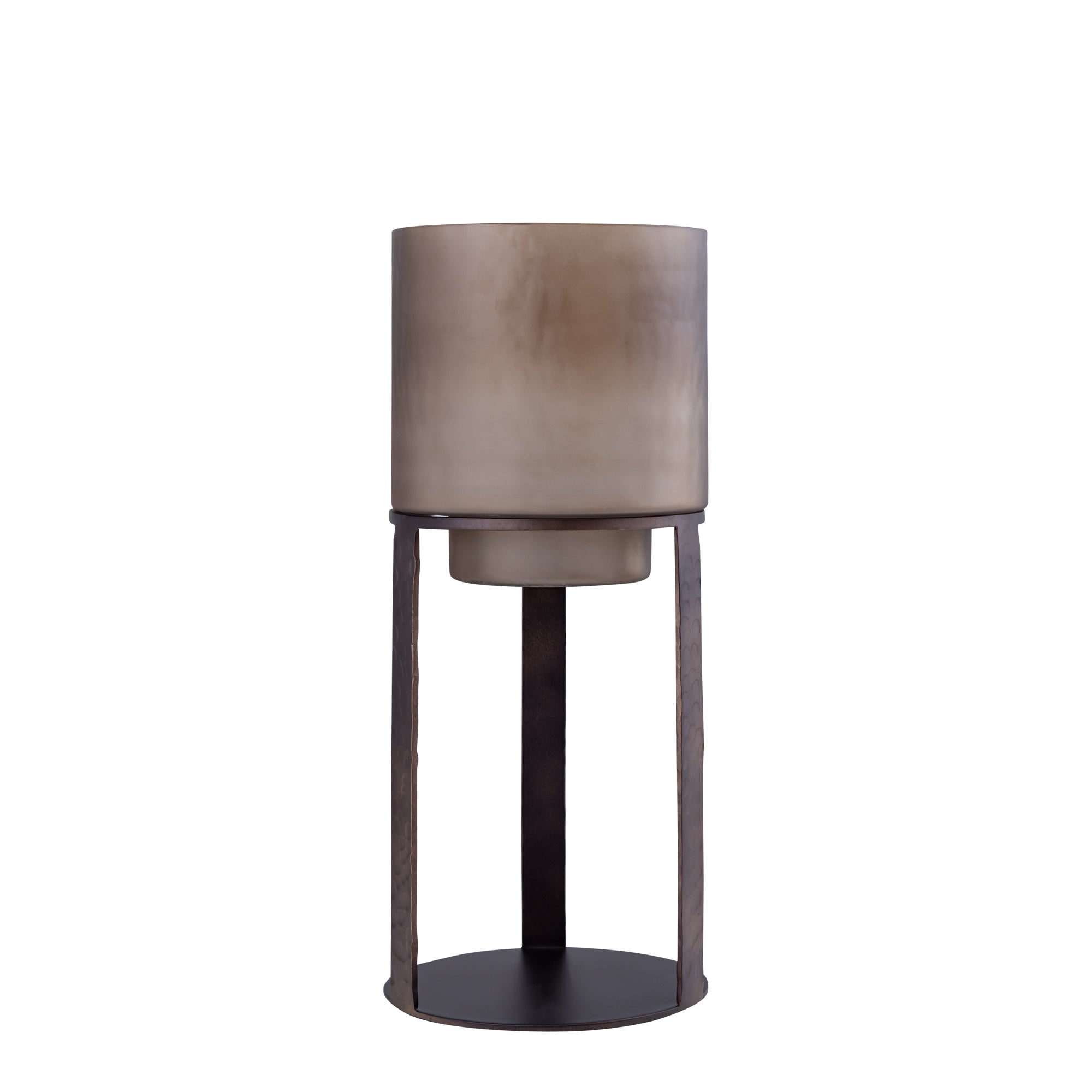 - ● Luxe bronzen afwerking met glazen stormlicht