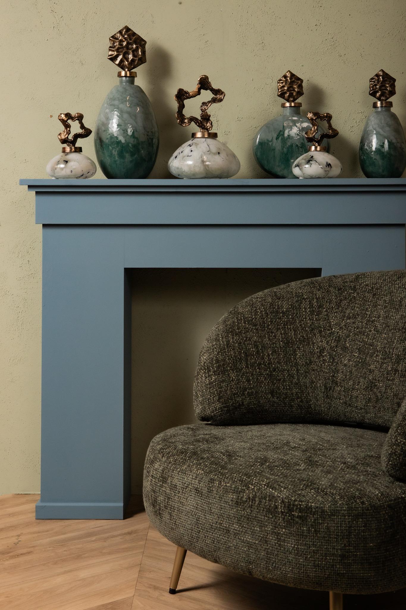 De PTMD Cherisee Green Glass Statue heeft een verfijnde uitstraling door de combinatie van het groene glas en het brass deksel. Dit contrast tussen de moderne, frisse groene tint en het klassieke brass geeft de vaas een luxe en kunstzinnige look die in elke ruimte tot zijn recht komt.