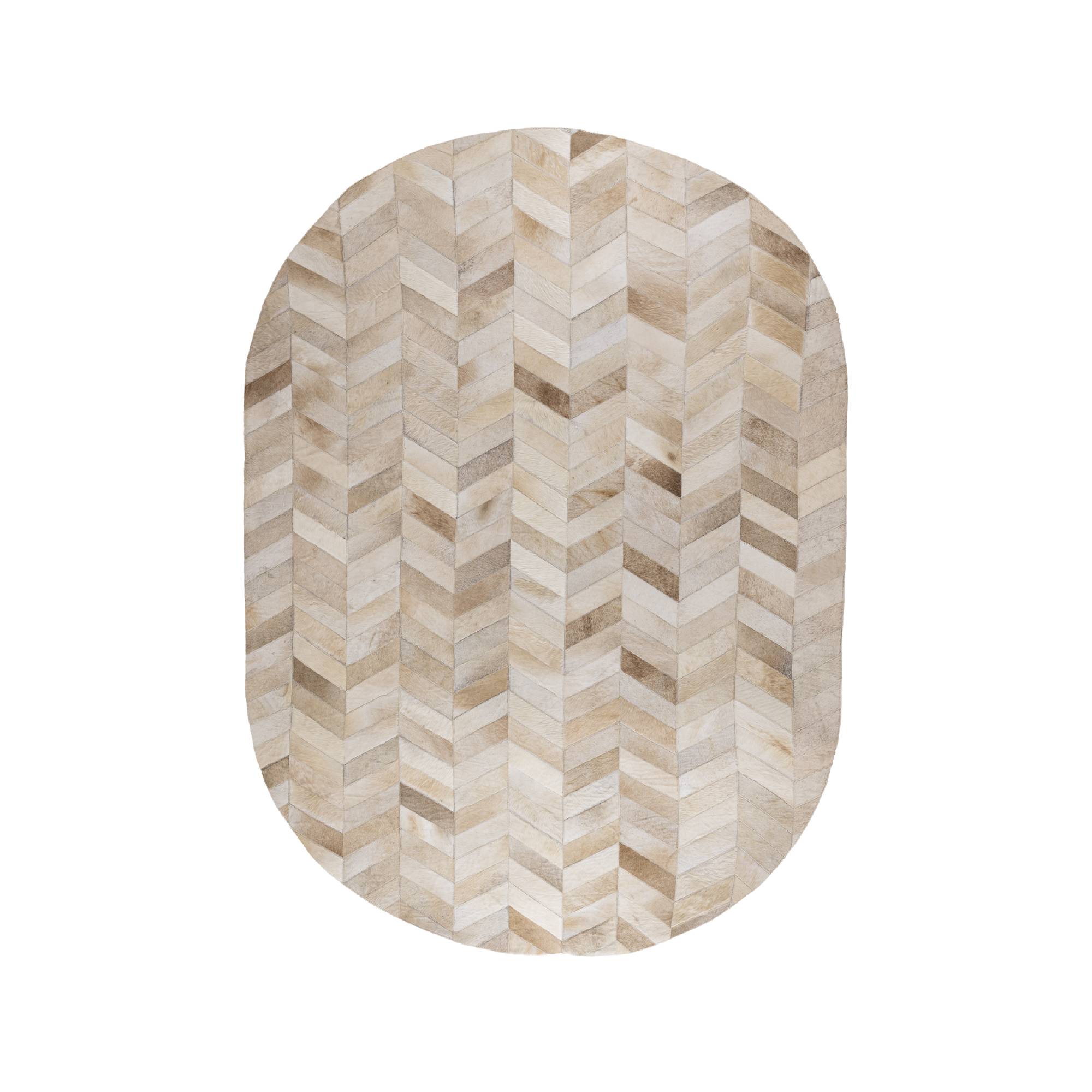 Een tijdloos pronkstuk voor je interieur: PTMD Joanne beige cowhair patchwork tapijt (ovaal, S 230 x 160 cm)