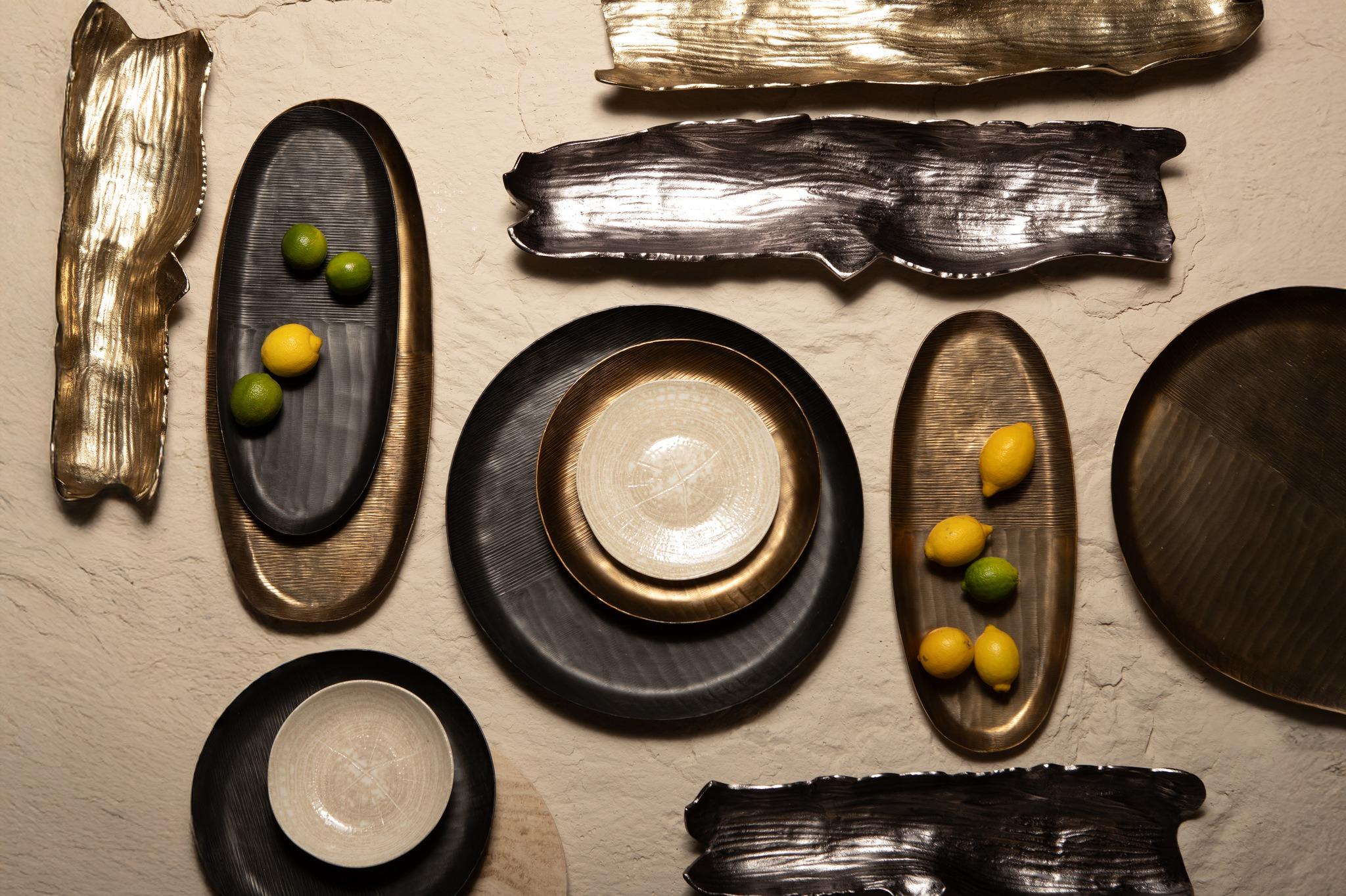 PTMD Jowad Antique Gold Alu Sheet Bowl Ribbed Oval L