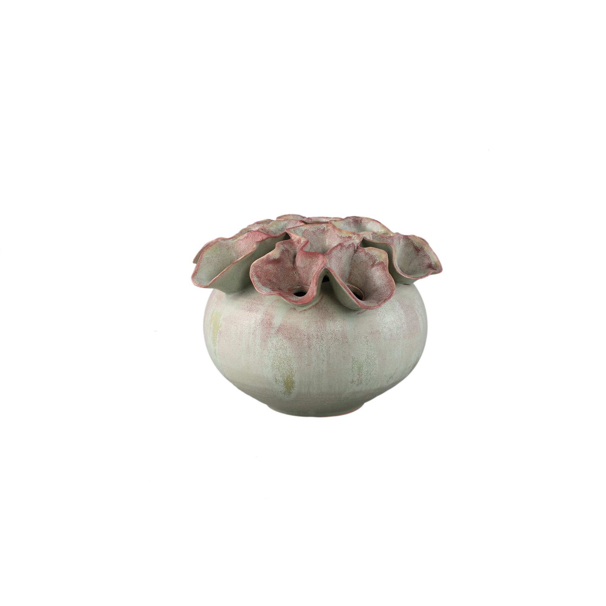 PTMD Jullia Green Ceramic Vase Flower Shaped Holes S