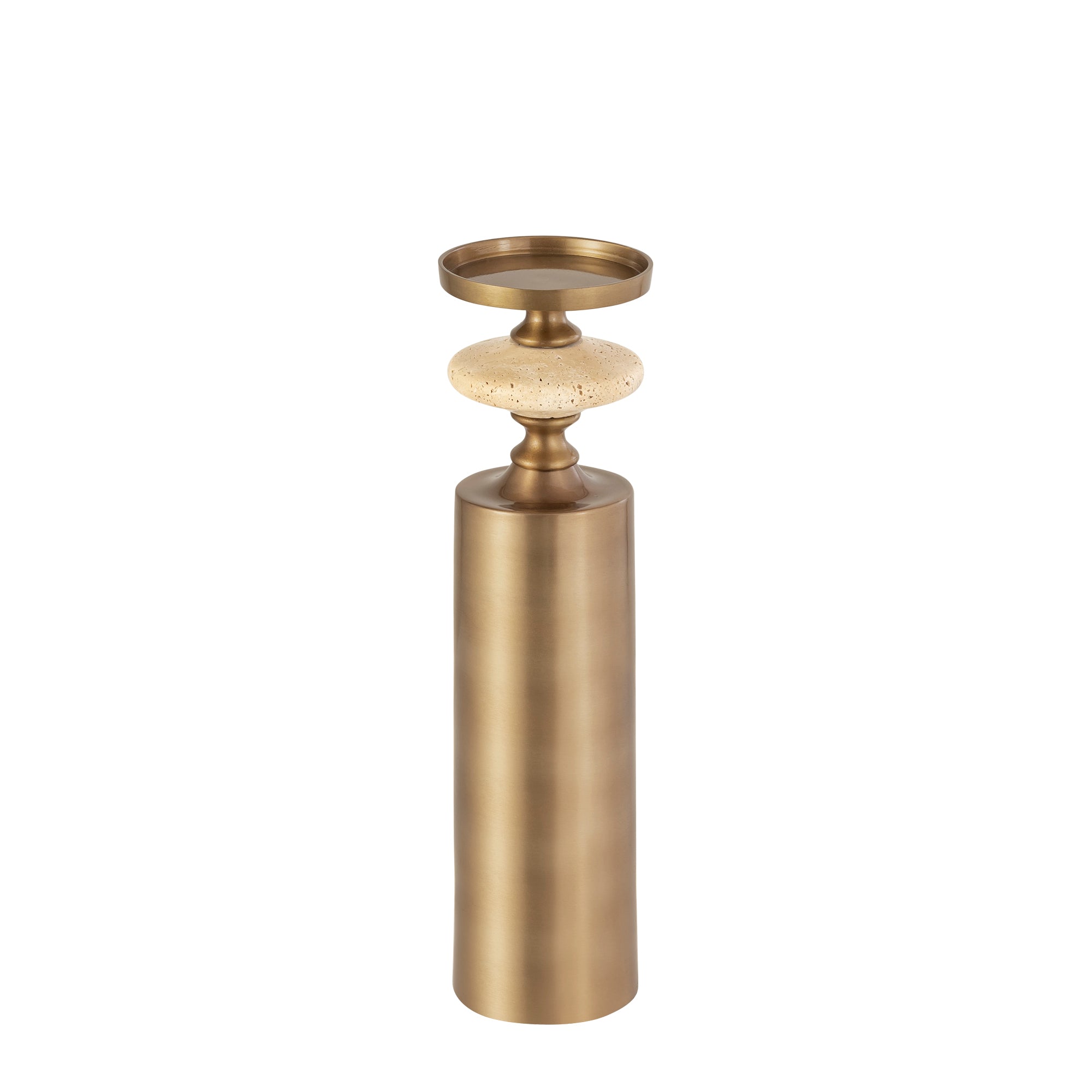 PTMD Nikolaos Brass Candleholder Travertine Round L