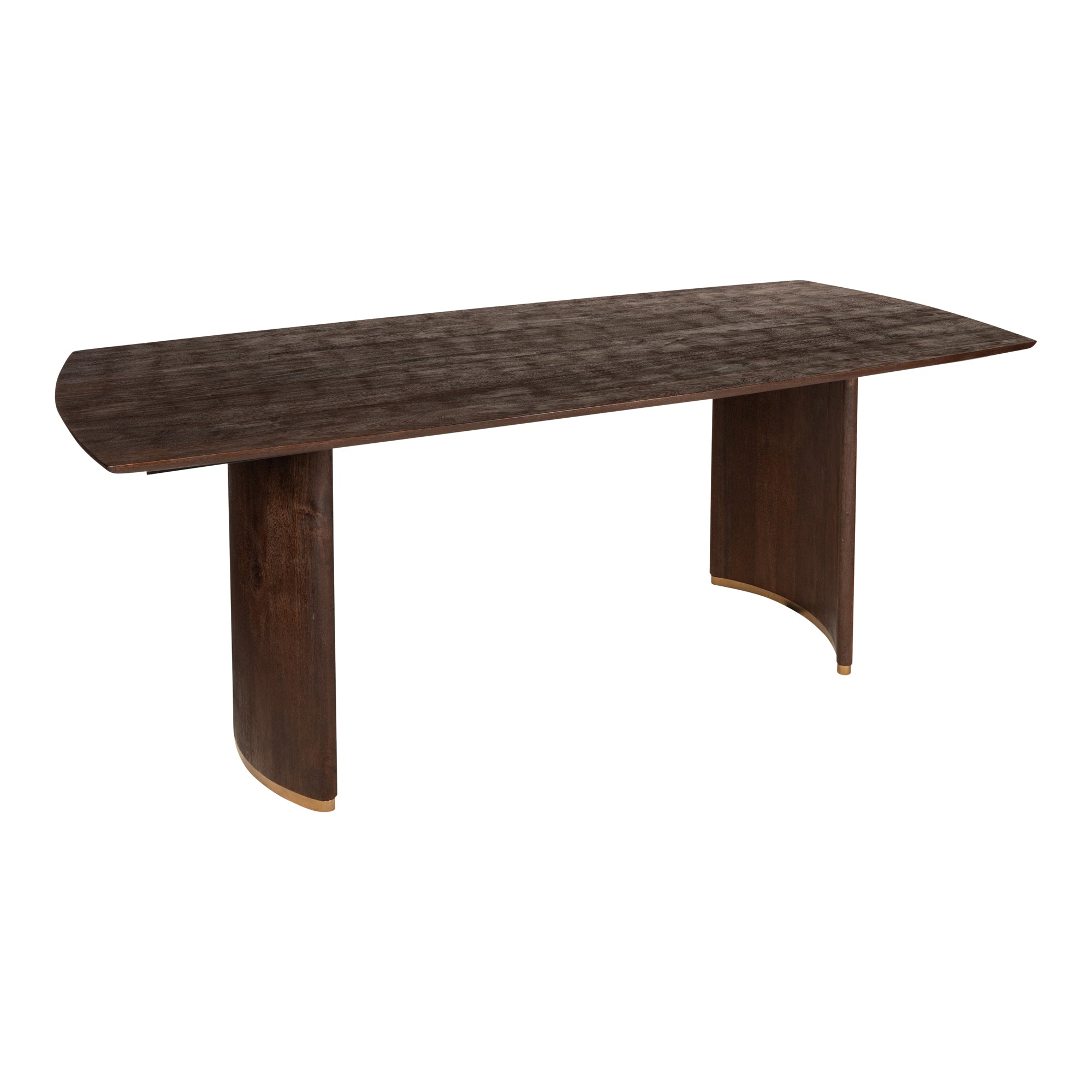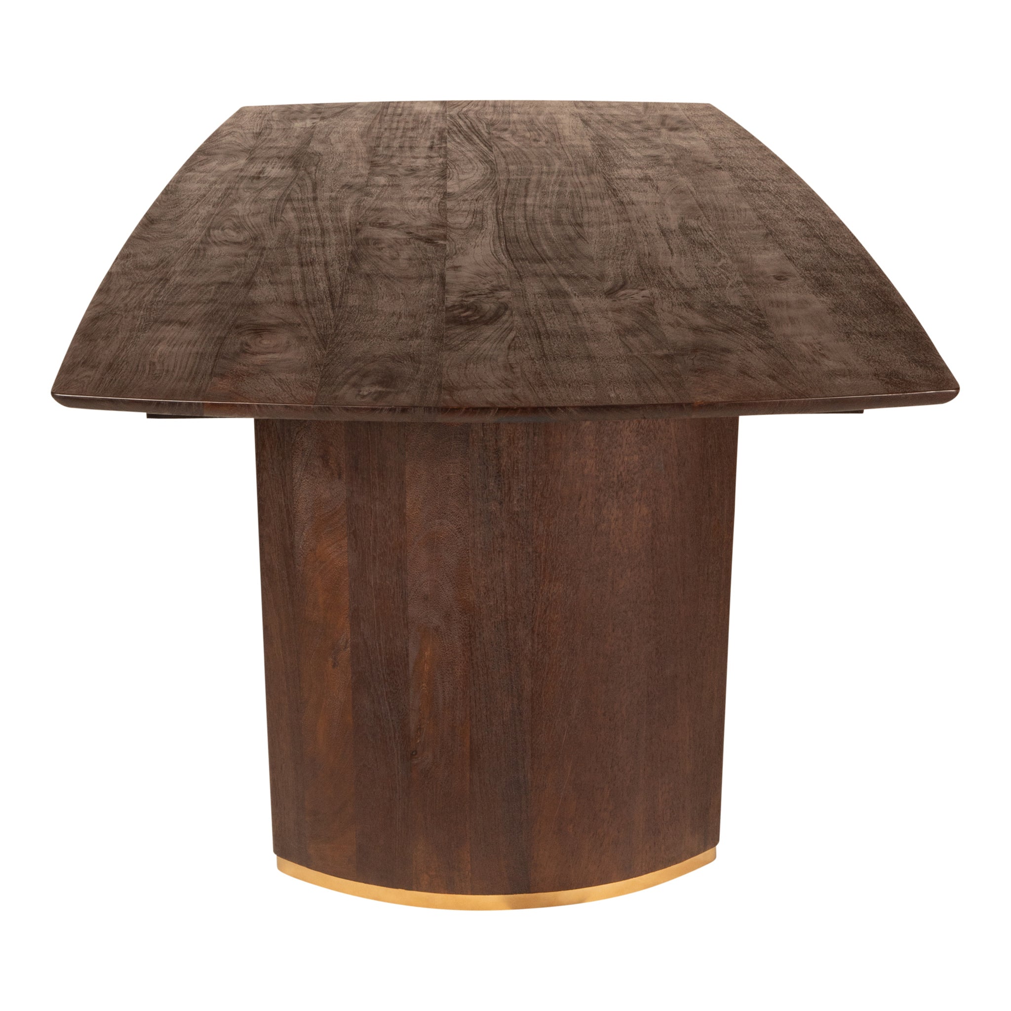 Luxe design: Deze tafel straalt luxe uit dankzij het gebruik van bruin mangohout en een gouden onderstel. Het voegt een vleugje klasse toe aan elke maaltijd.