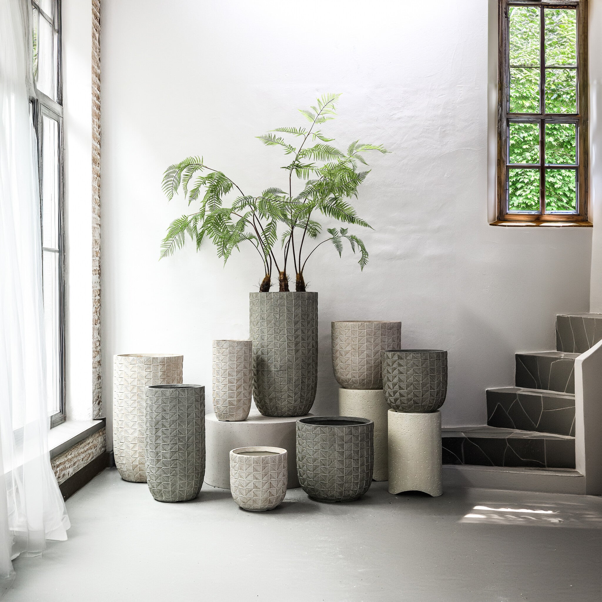 Het stijlvolle vierkante reliëf op de pot geeft een eigentijdse en speelse uitstraling. Dit subtiele design zorgt ervoor dat de pot zowel als decoratief object als functionele plantenpot een blikvanger is.