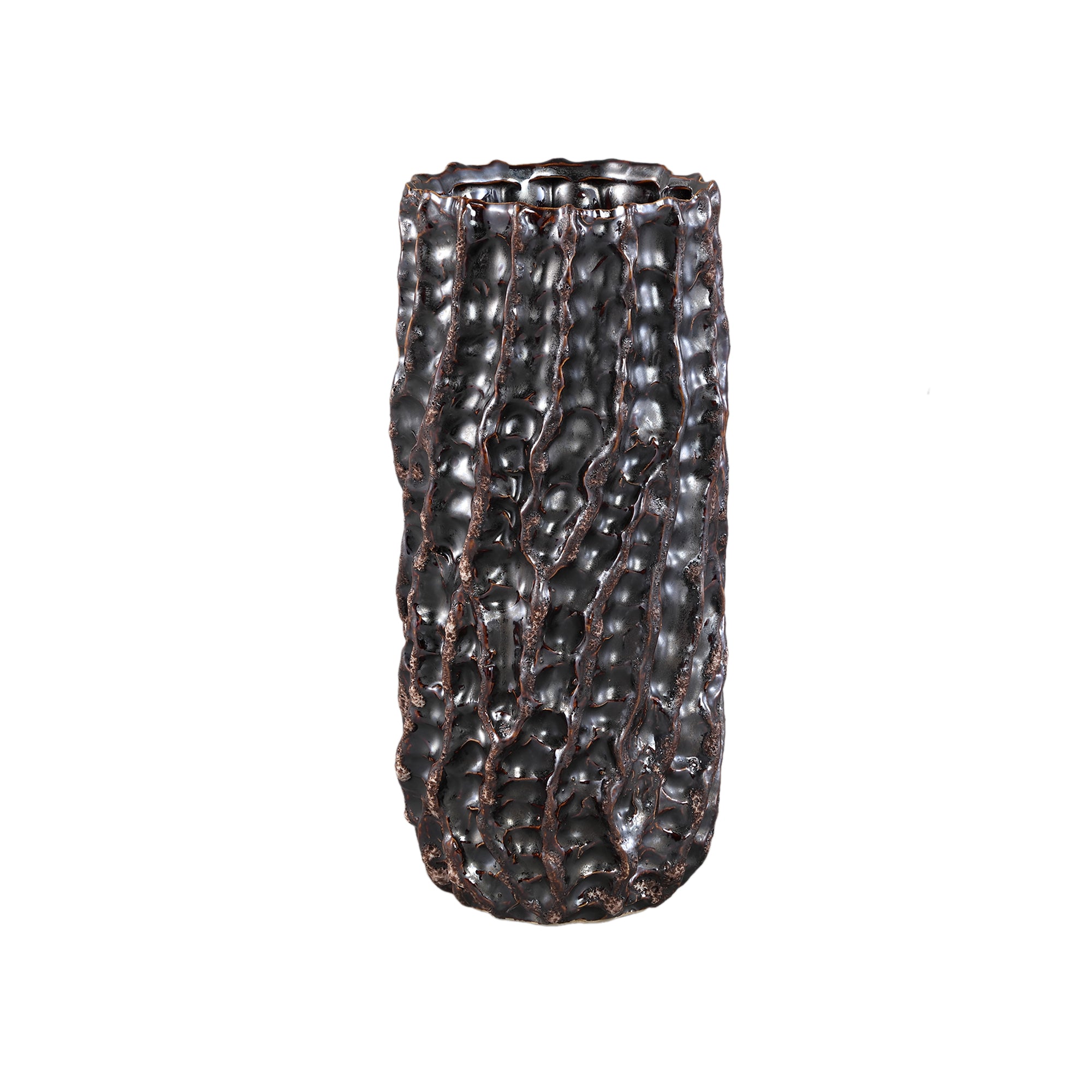 PTMD Vikton Brown Round Ceramic Pot Rough Pattern XL