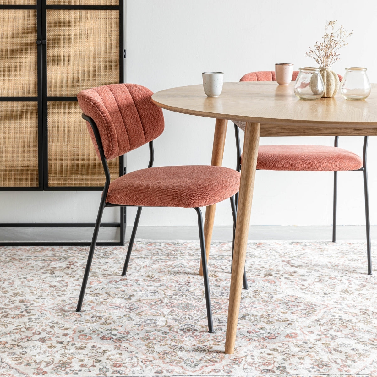 Puur - Viken eetkamerstoel stof - roze|oranje - zwart onderstel