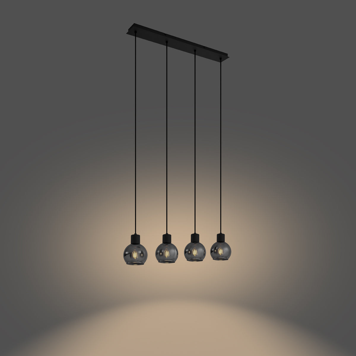 QAZQA Art Deco hanglamp zwart met smoke glas langwerpig 4-lichts -