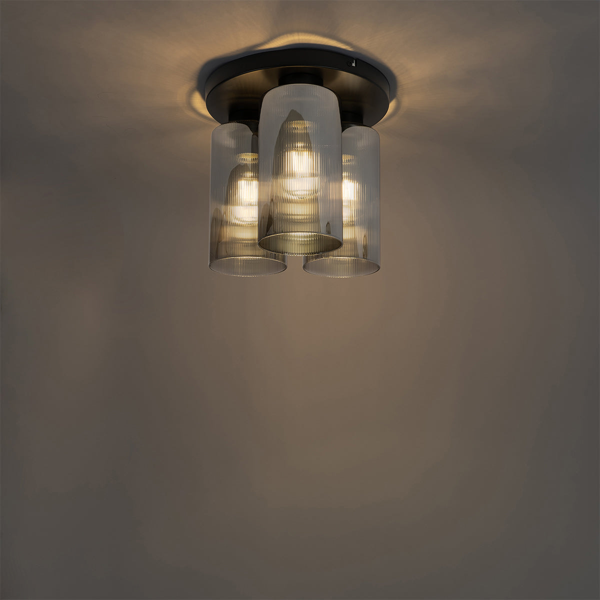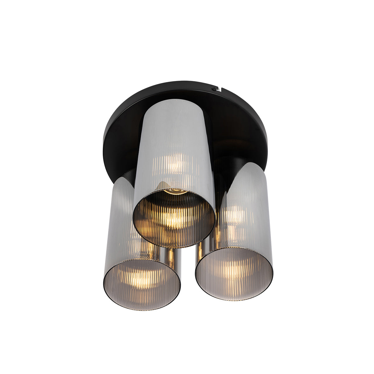 QAZQA Art Deco plafondlamp zwart met smoke glas 3-lichts - Laura
