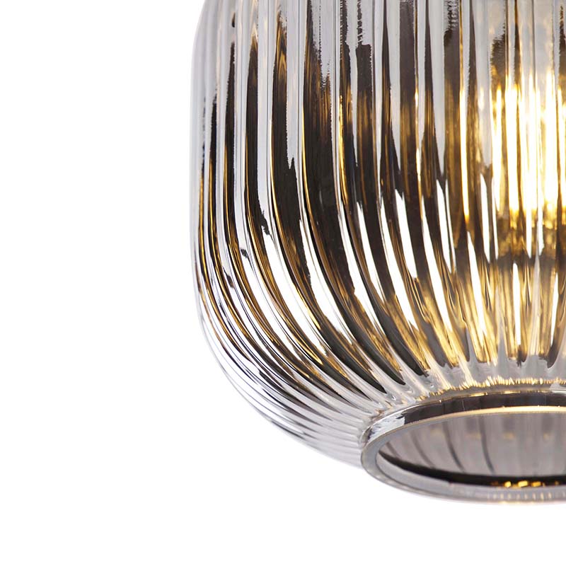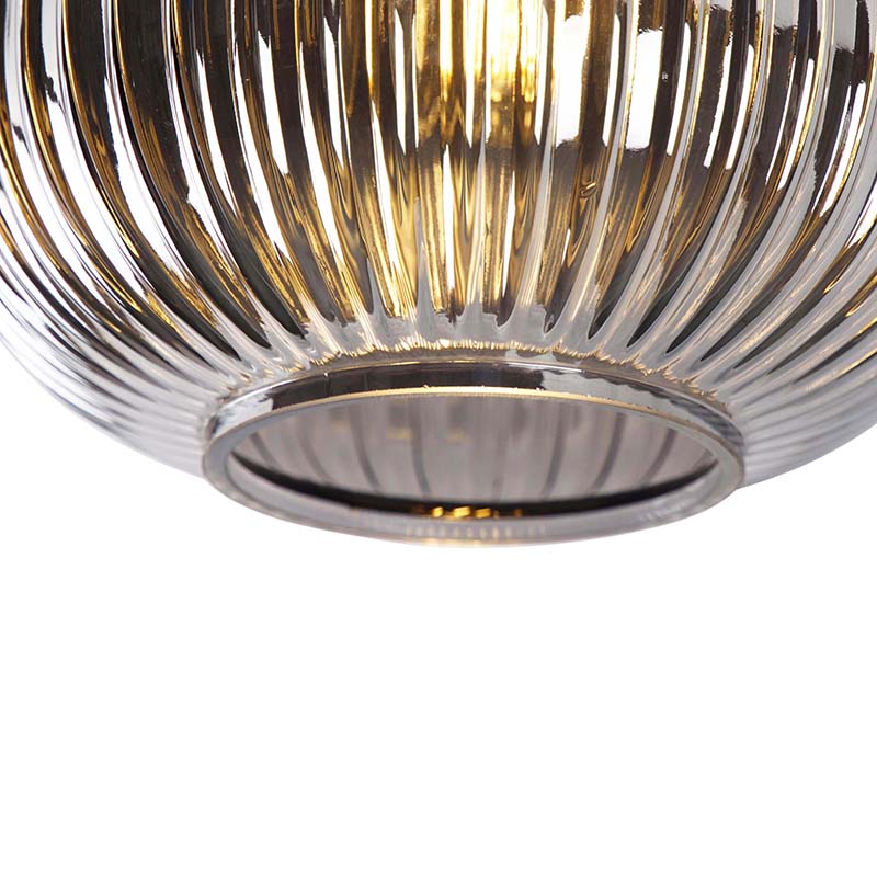 QAZQA Art deco plafondlamp zwart met smoke glas - Karel