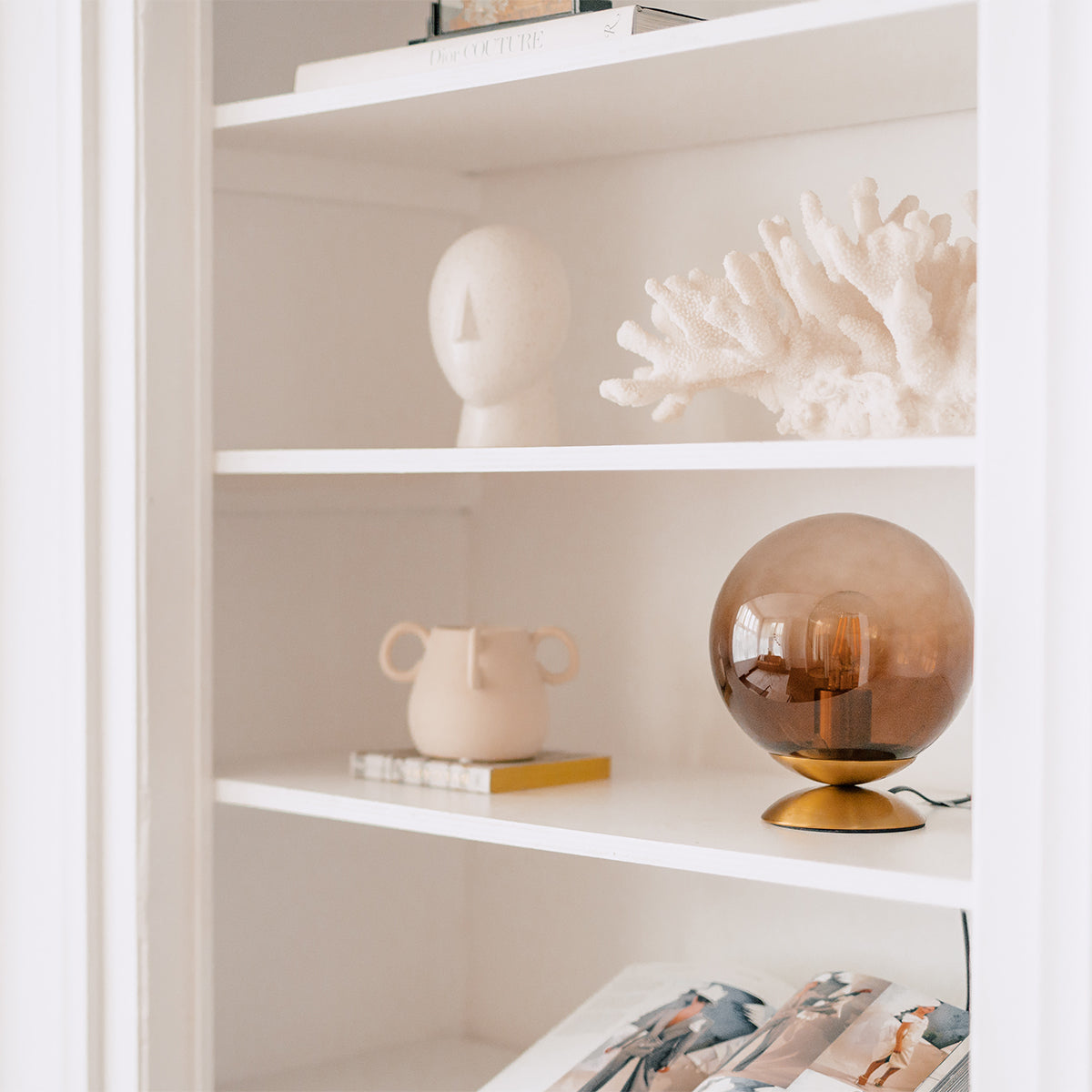- Het materiaal van de lamp is glas