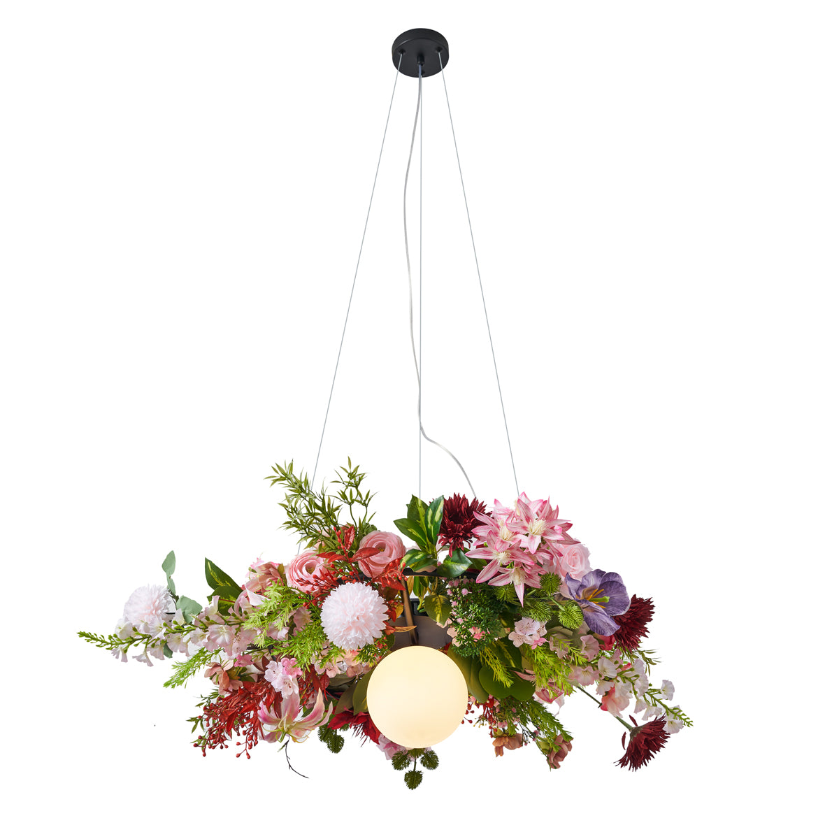 QAZQA Bohemian plafondlamp zwart met gekleurde bloemen rood en roze -