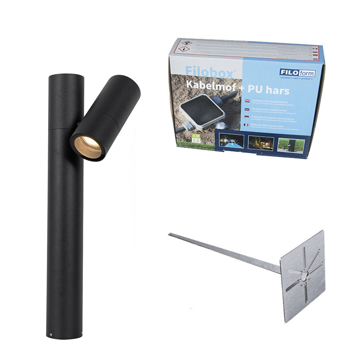 QAZQA Buitenlamp zwart met grondpin en kabelmof 50cm IP44 - Solo