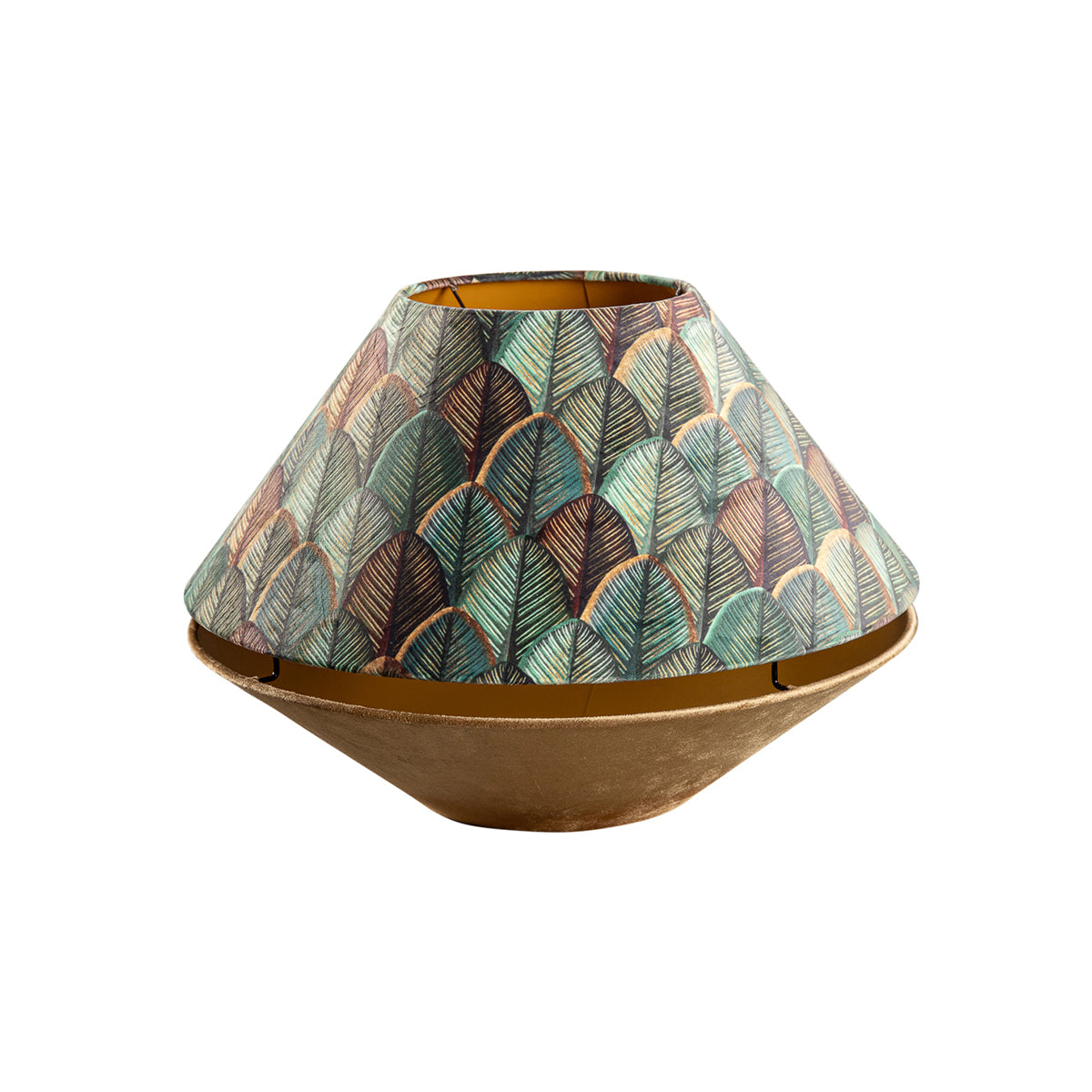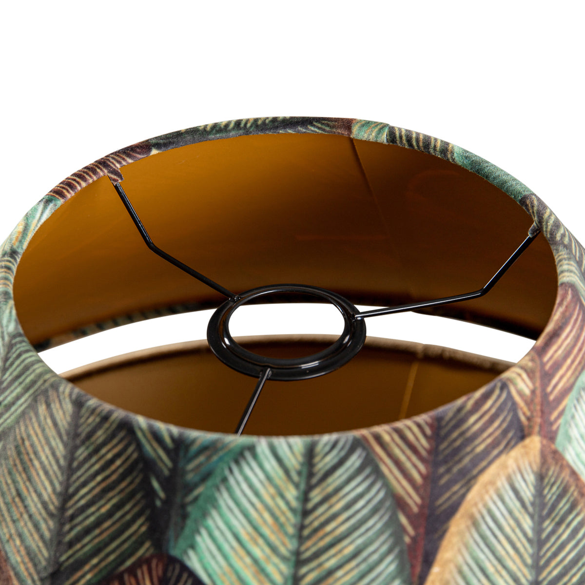 QAZQA Dubbele velours lampenkap blad dessin en beige met gouden