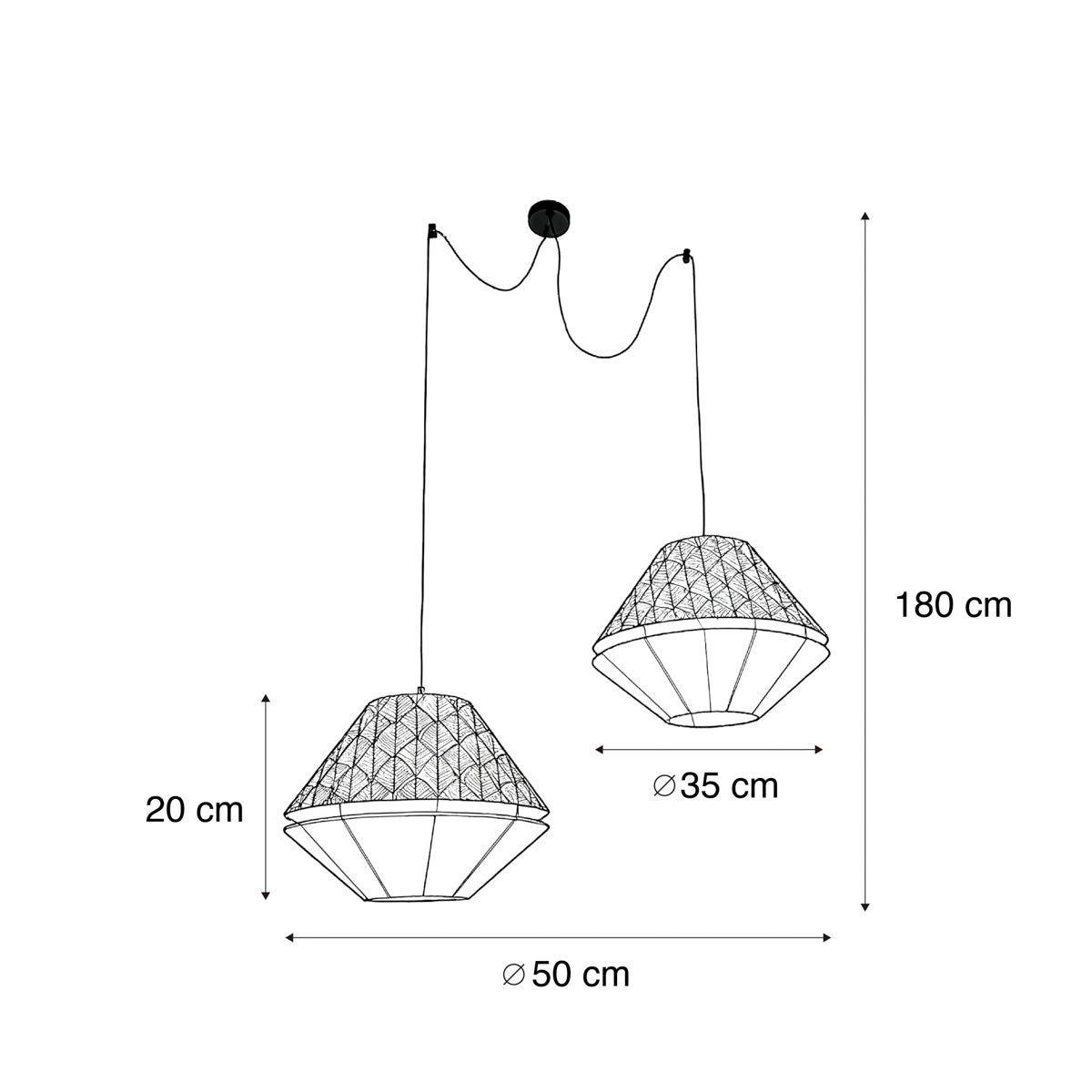 QAZQA Hanglamp zwart met dubbele velours lampenkap blad dessin en