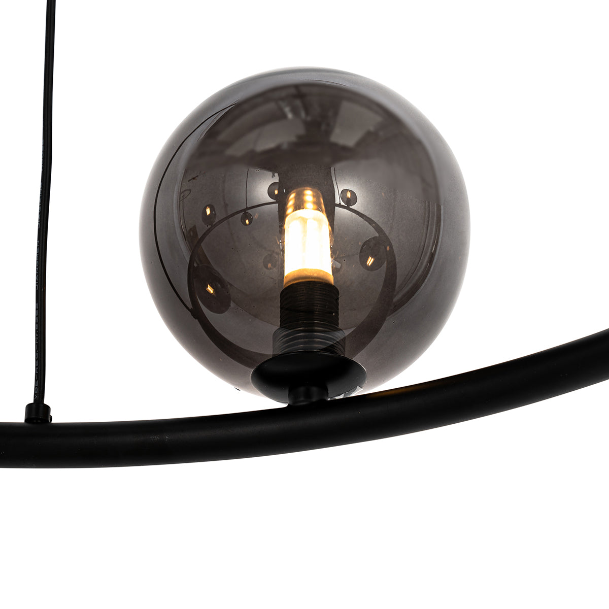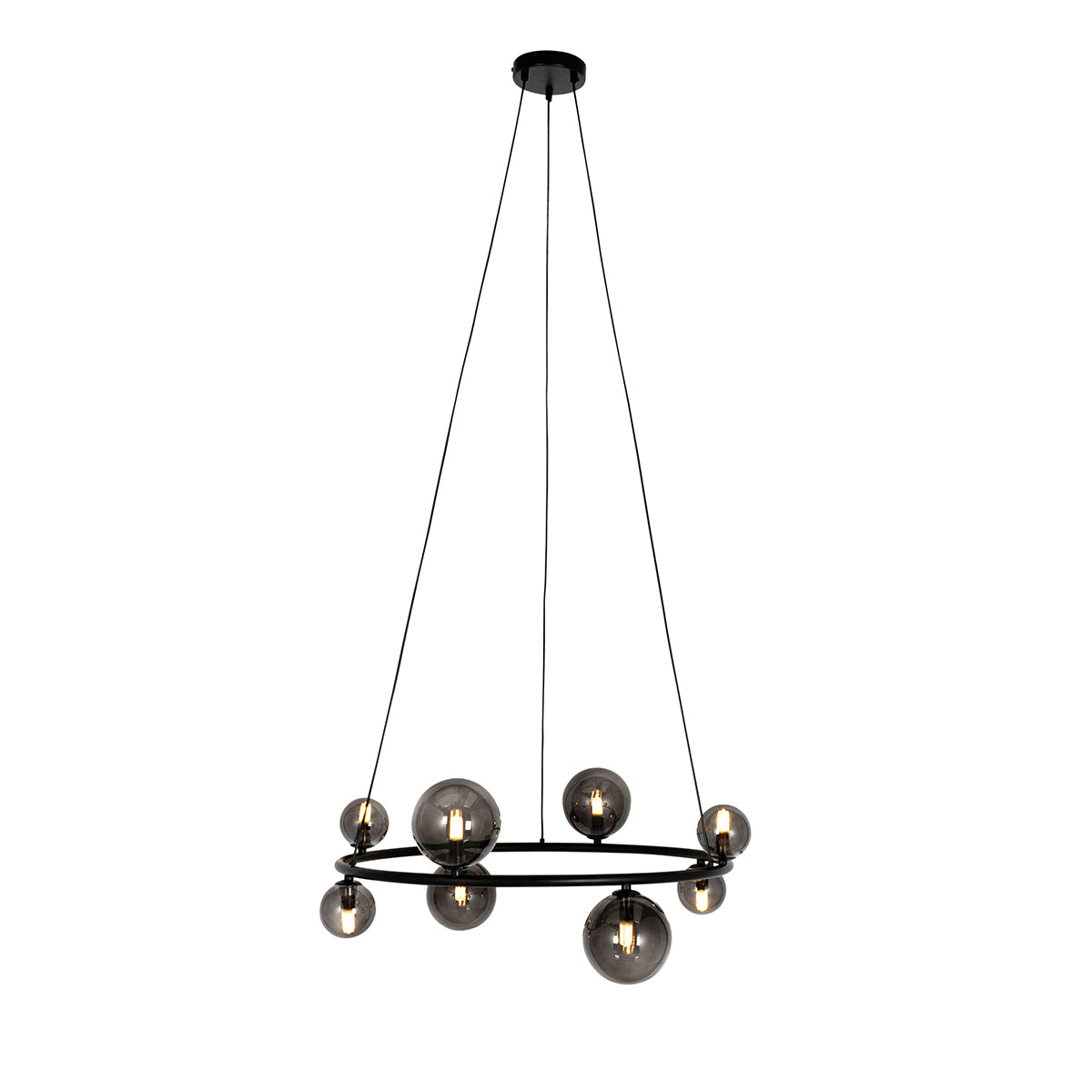 QAZQA Hanglamp zwart met smoke glas rond 8-lichts - Monaco