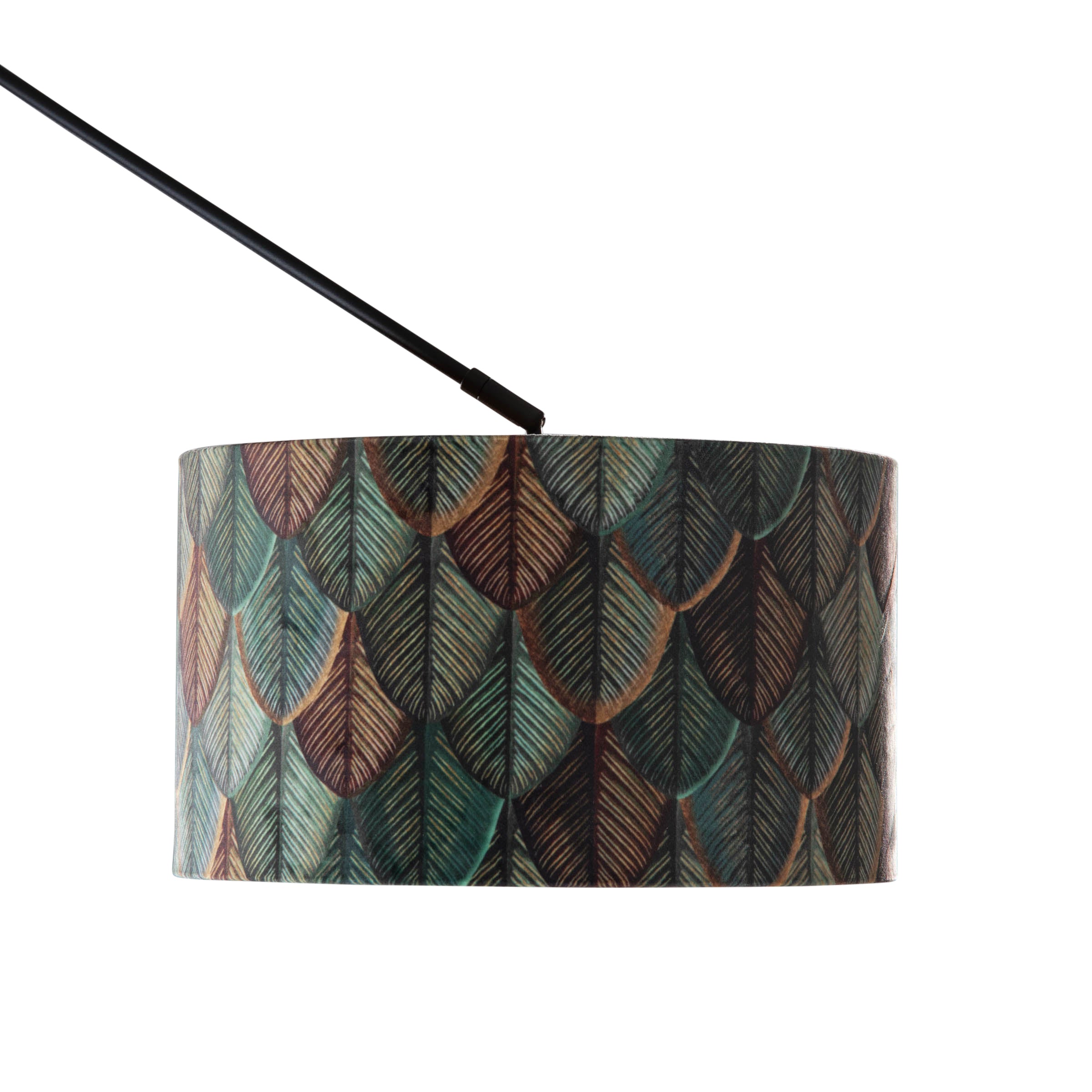QAZQA Hanglamp zwart met velours lampenkap blad dessin met gouden