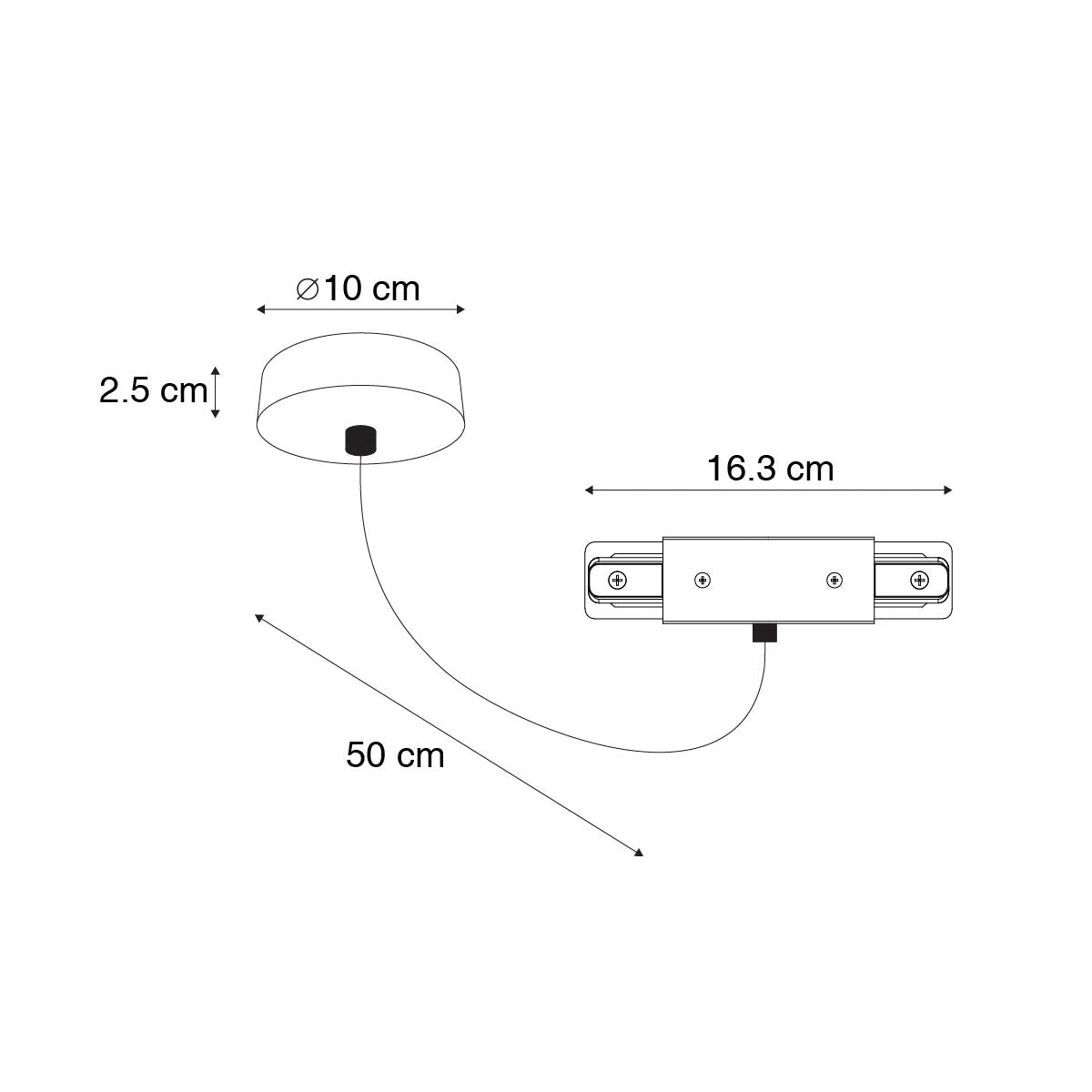 Deze I voeding is ideaal wanneer het aansluitpunt in huis in het midden van de ruimte zit. Zo kun je het railsysteem dus ook netjes in het midden ophangen. De voeding is gemaakt van zwart staal. Hij heeft een diepte van 10 cm, hoogte van 60 cm en lengte van 16,3 cm. De kabel is 50 cm. Echt een toevoeging voor je railsysteem!