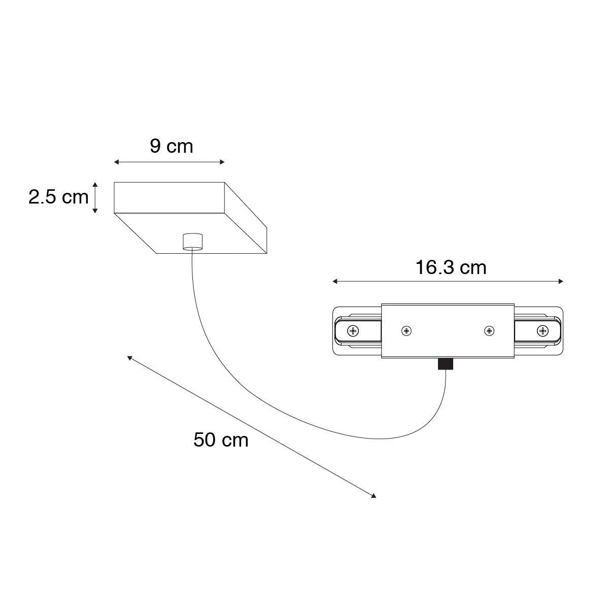 QAZQA I voeding met vierkante montageplaat voor 1-fase rail zwart -