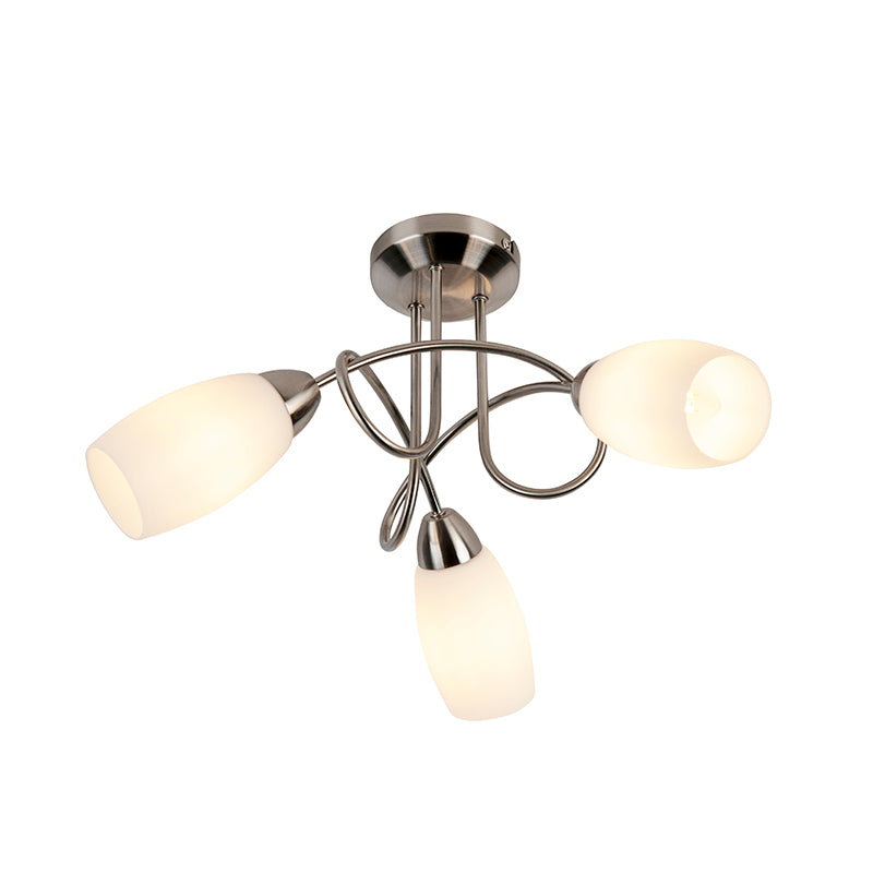 QAZQA Klassieke plafondlamp staal 3-lichts - Fortress