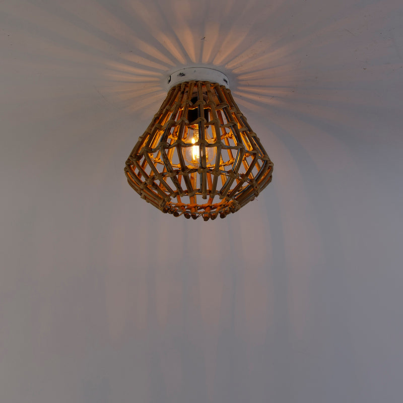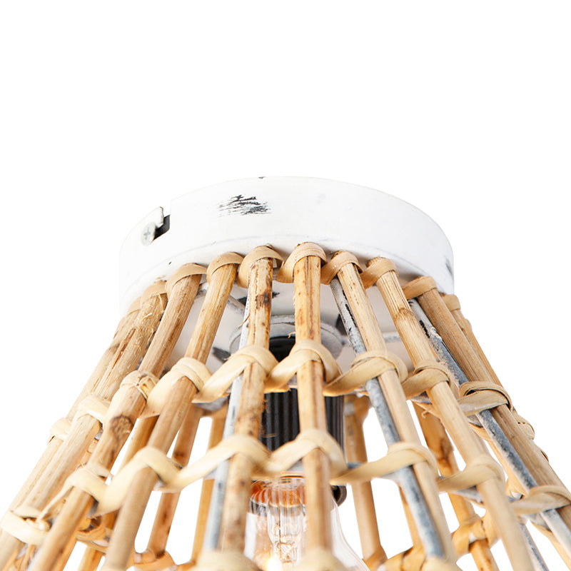 QAZQA Landelijke plafondlamp bamboe met wit - Canna Diamond
