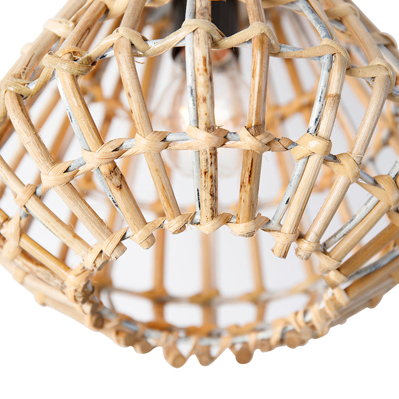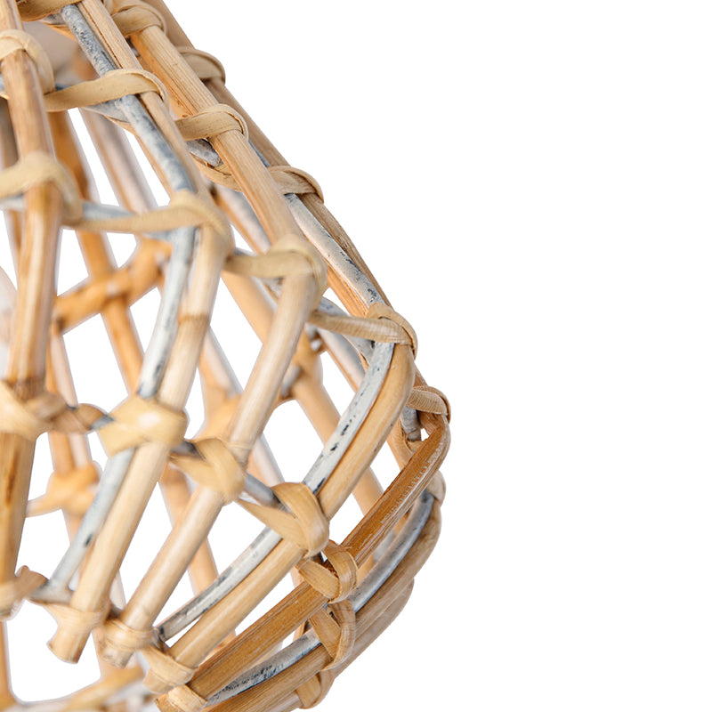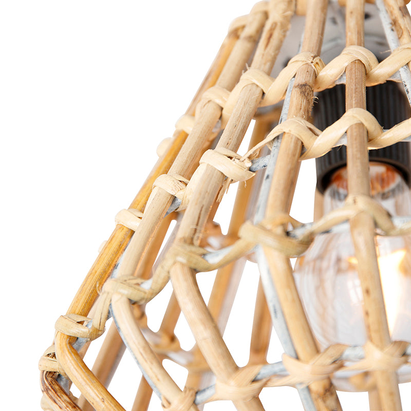 - Het materiaal van de lamp is bamboe