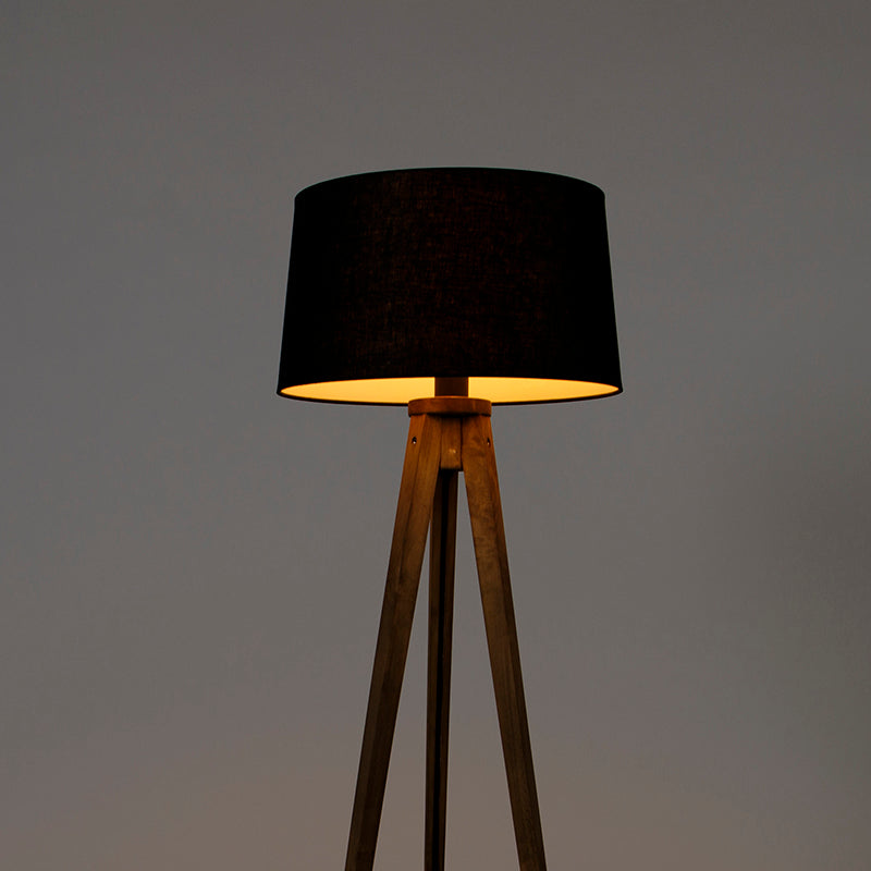 QAZQA Landelijke tripod vintage hout met linnen kap zwart 45 cm -
