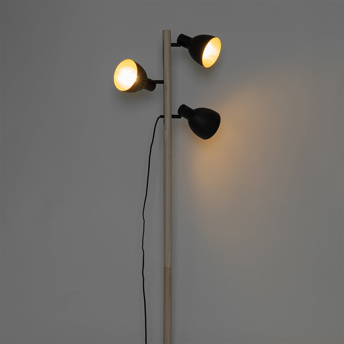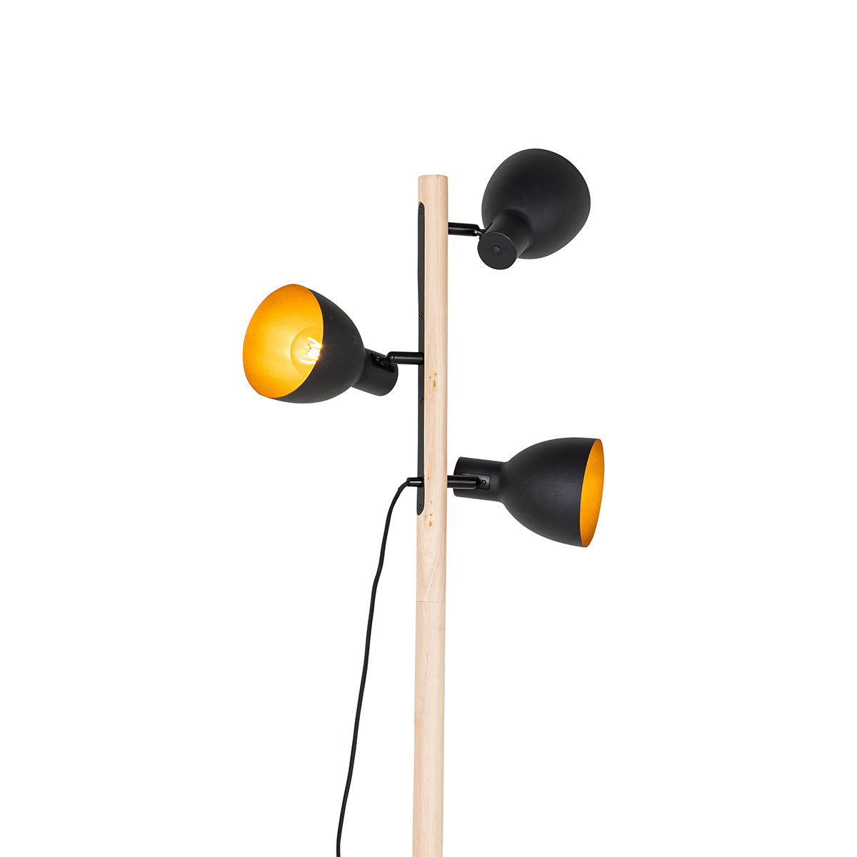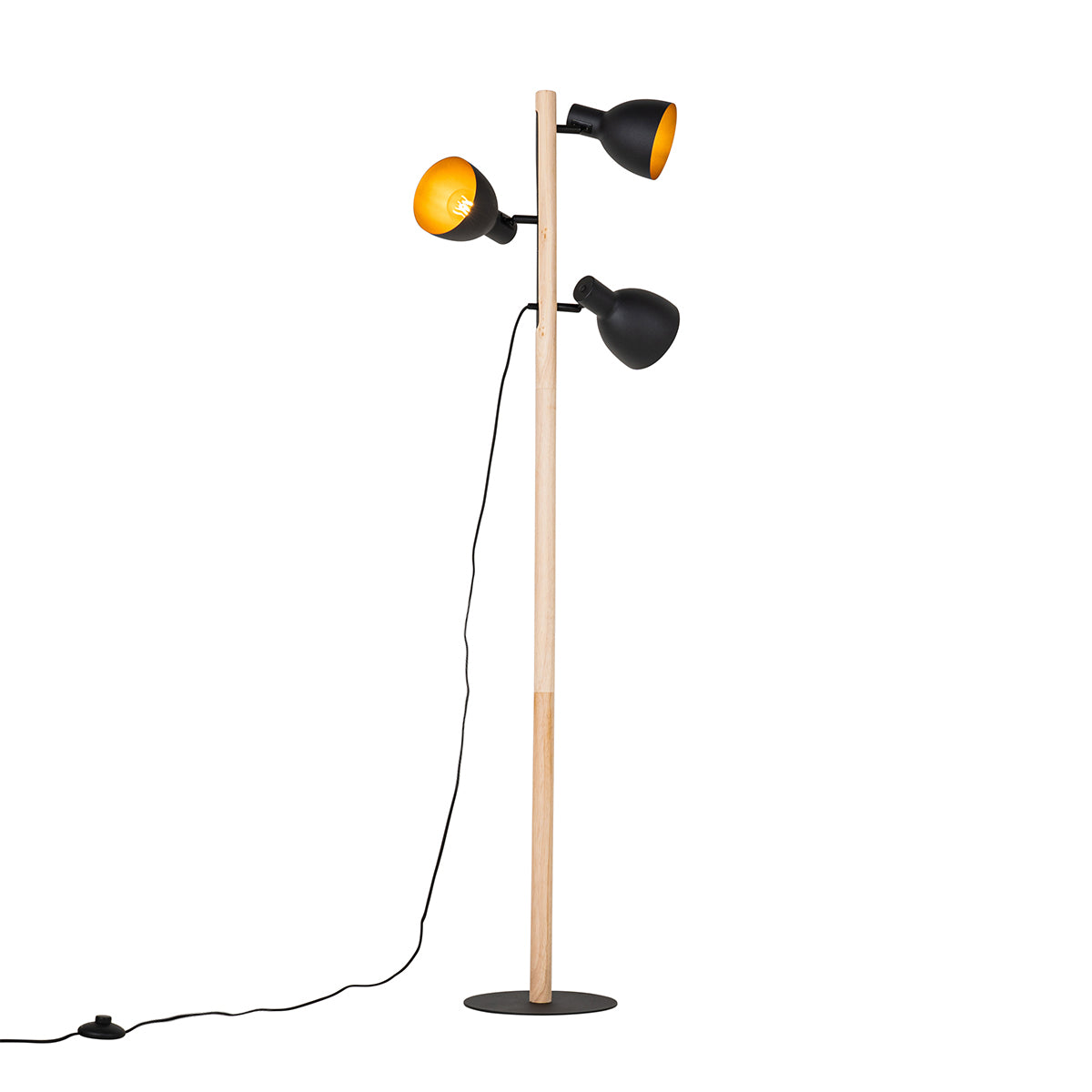 QAZQA Landelijke vloerlamp zwart met hout 3-lichts - Flint