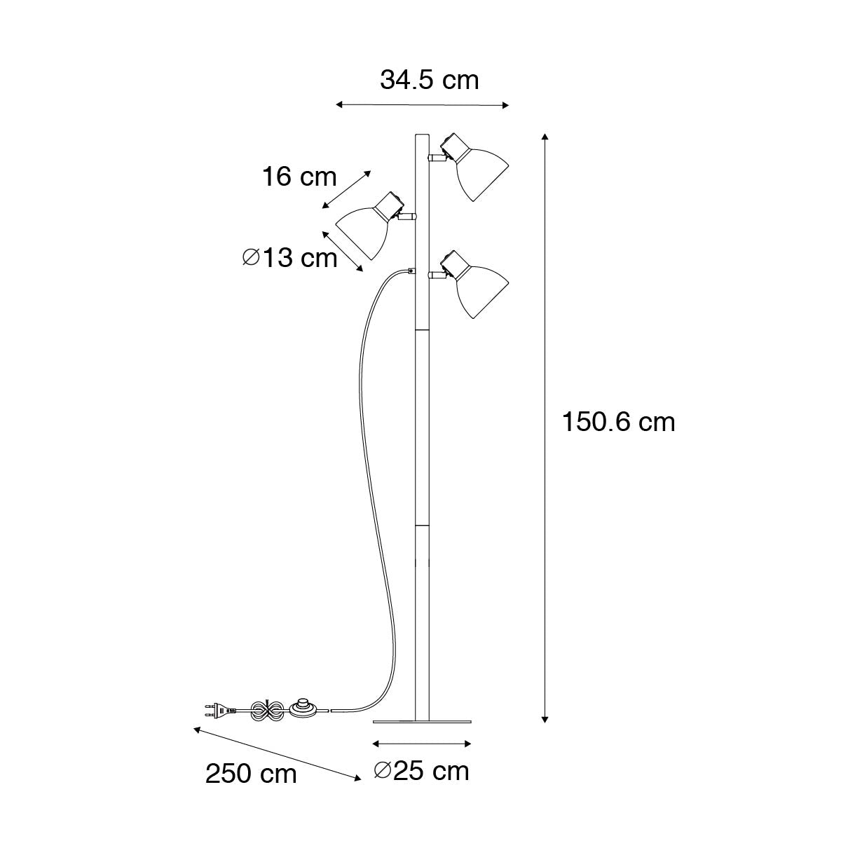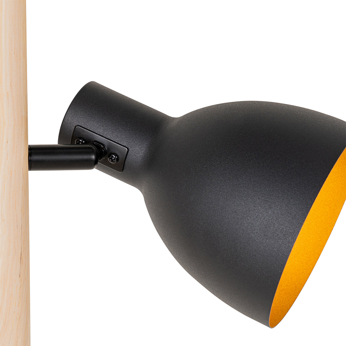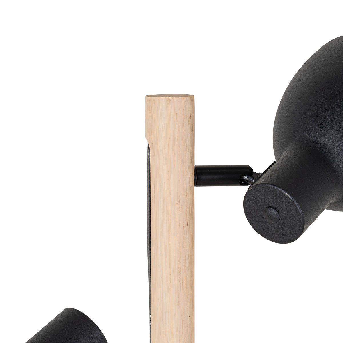QAZQA Landelijke vloerlamp zwart met hout 3-lichts - Flint