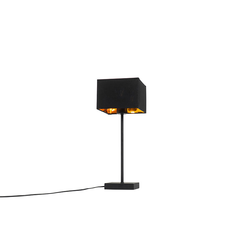QAZQA Moderne tafellamp zwart stoffen kap zwart met goud - VT 1