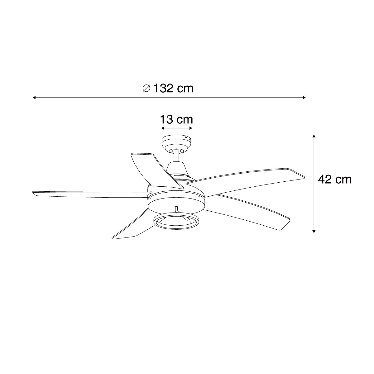 QAZQA Plafondventilator zwart 132cm incl. LED met afstandbediening -