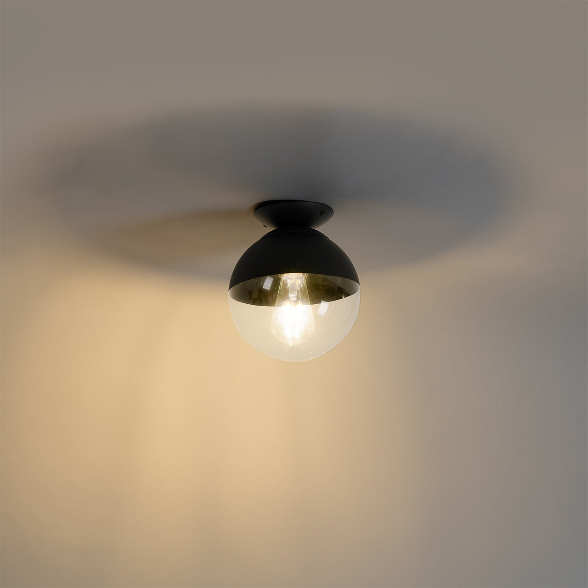 QAZQA Retro plafondlamp zwart met helder glas - Eclipse