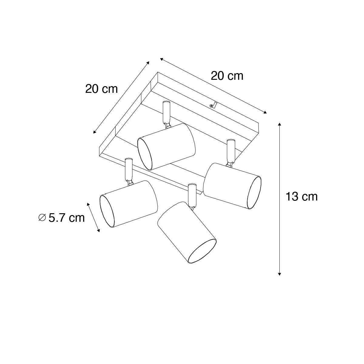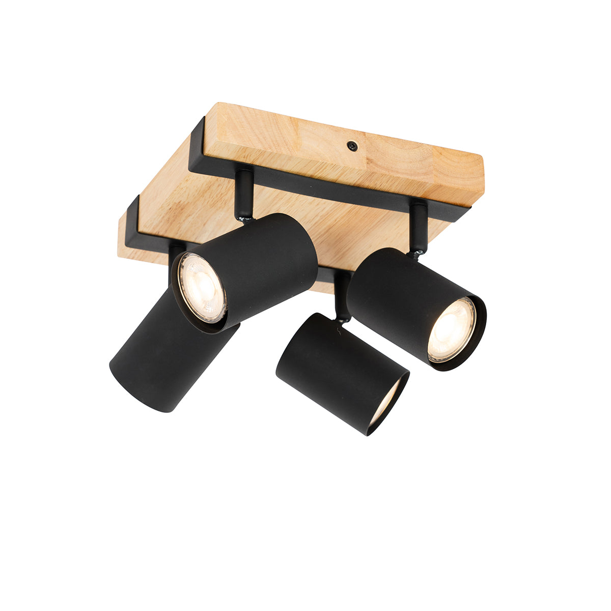 QAZQA Smart plafondspot zwart met hout 4-lichts draai- en kantelbaar