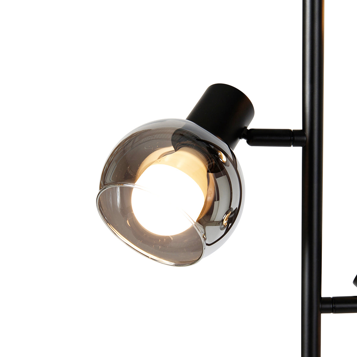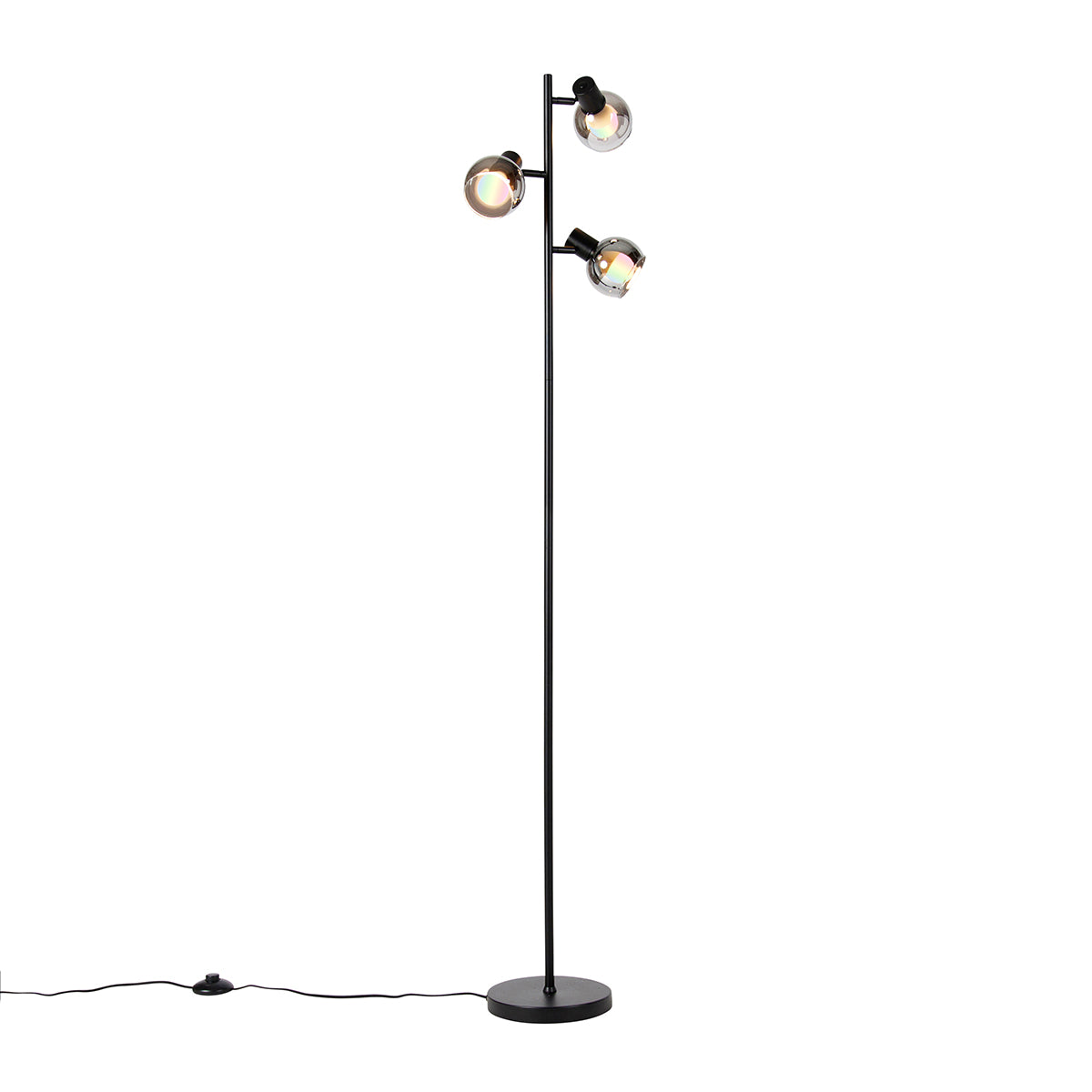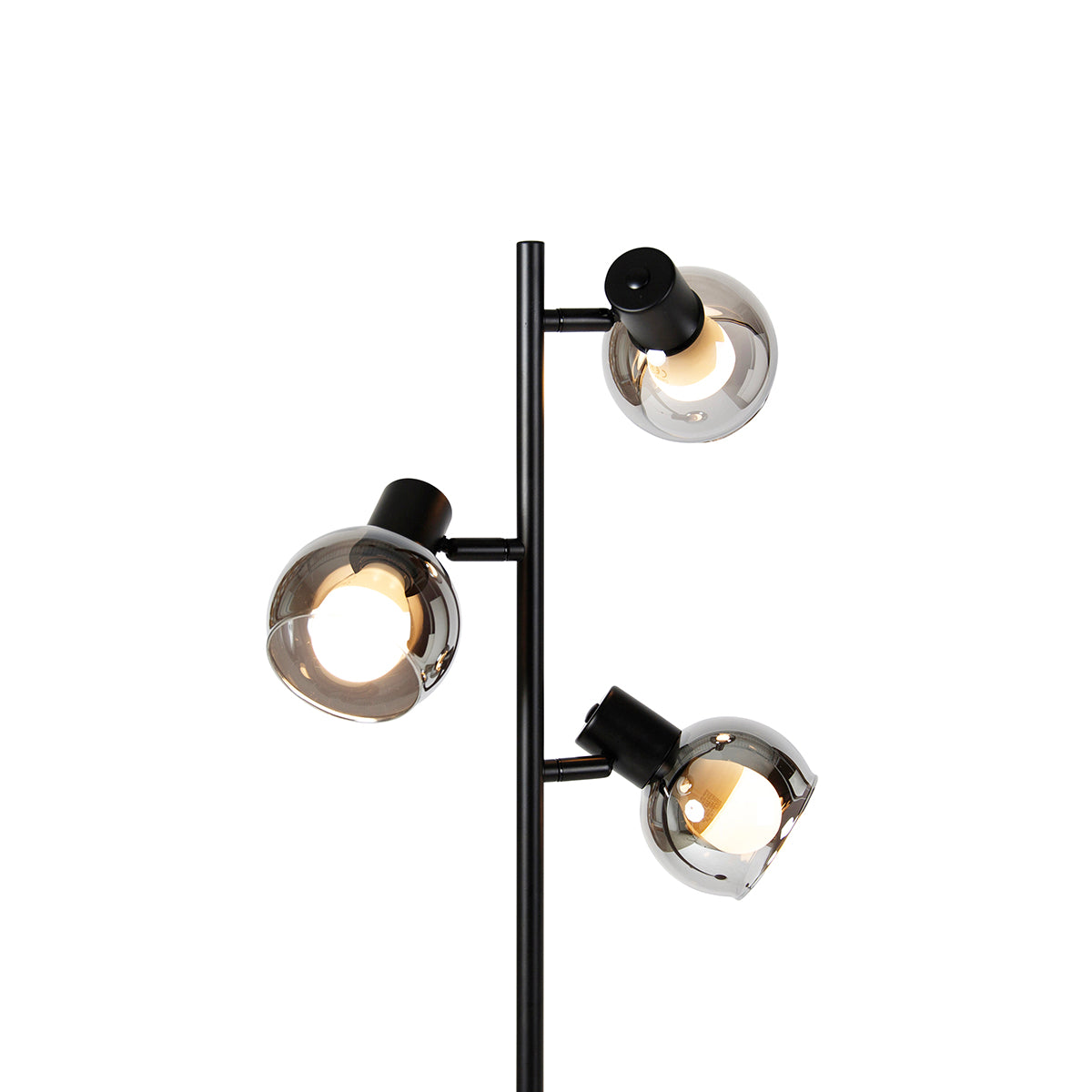 QAZQA Smart vloerlamp zwart met smoke glas incl. 3 Wifi P45 - Vidro