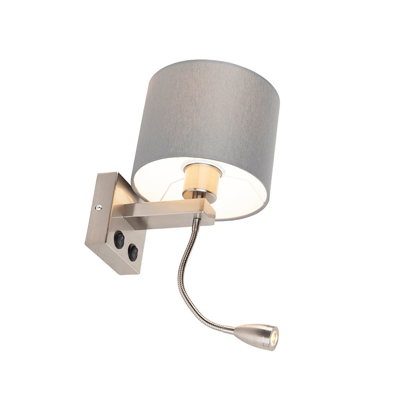 QAZQA Smart wandlamp staal met grijze kap incl. Wifi A60 - Brescia