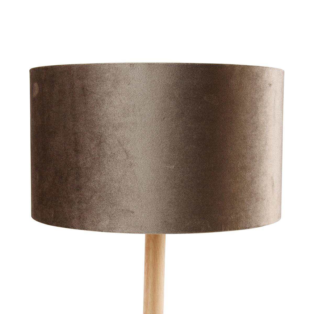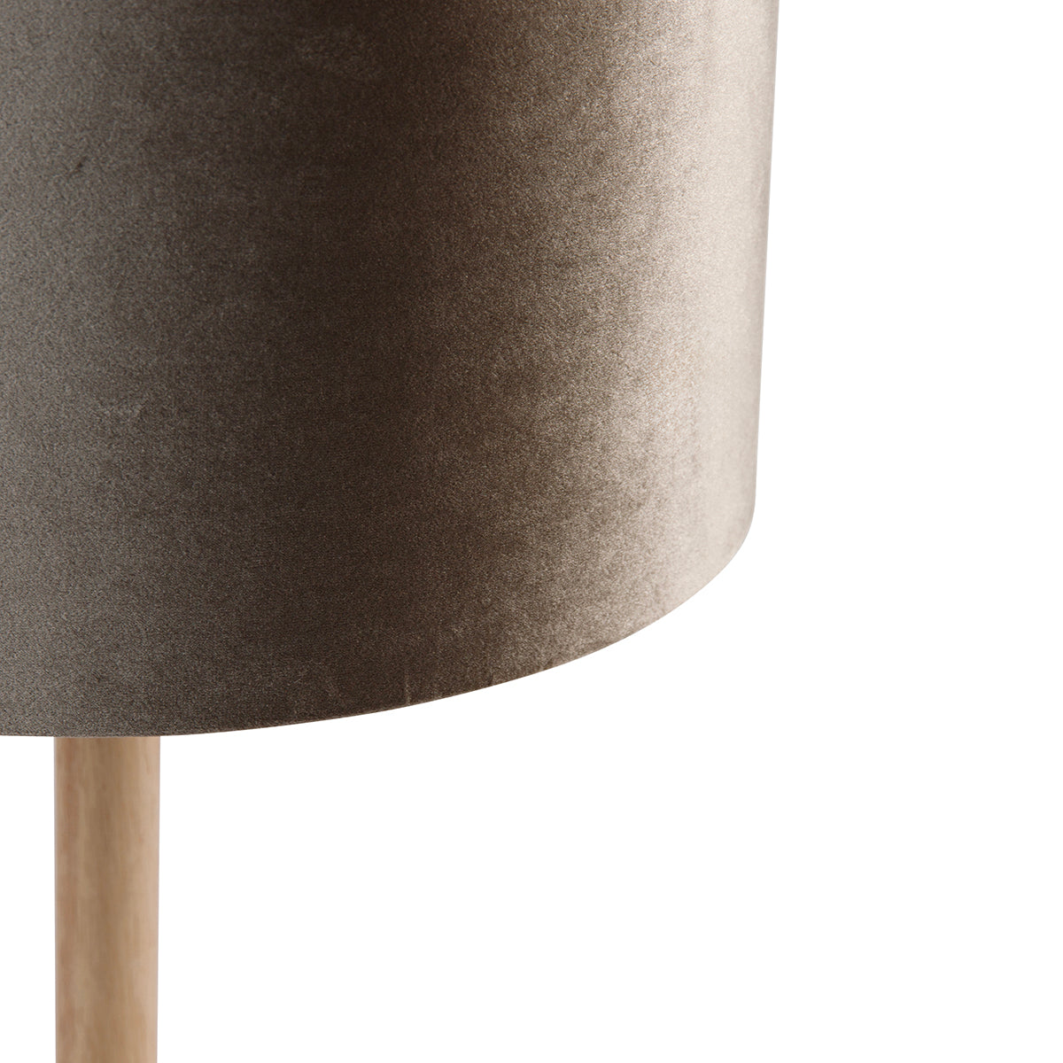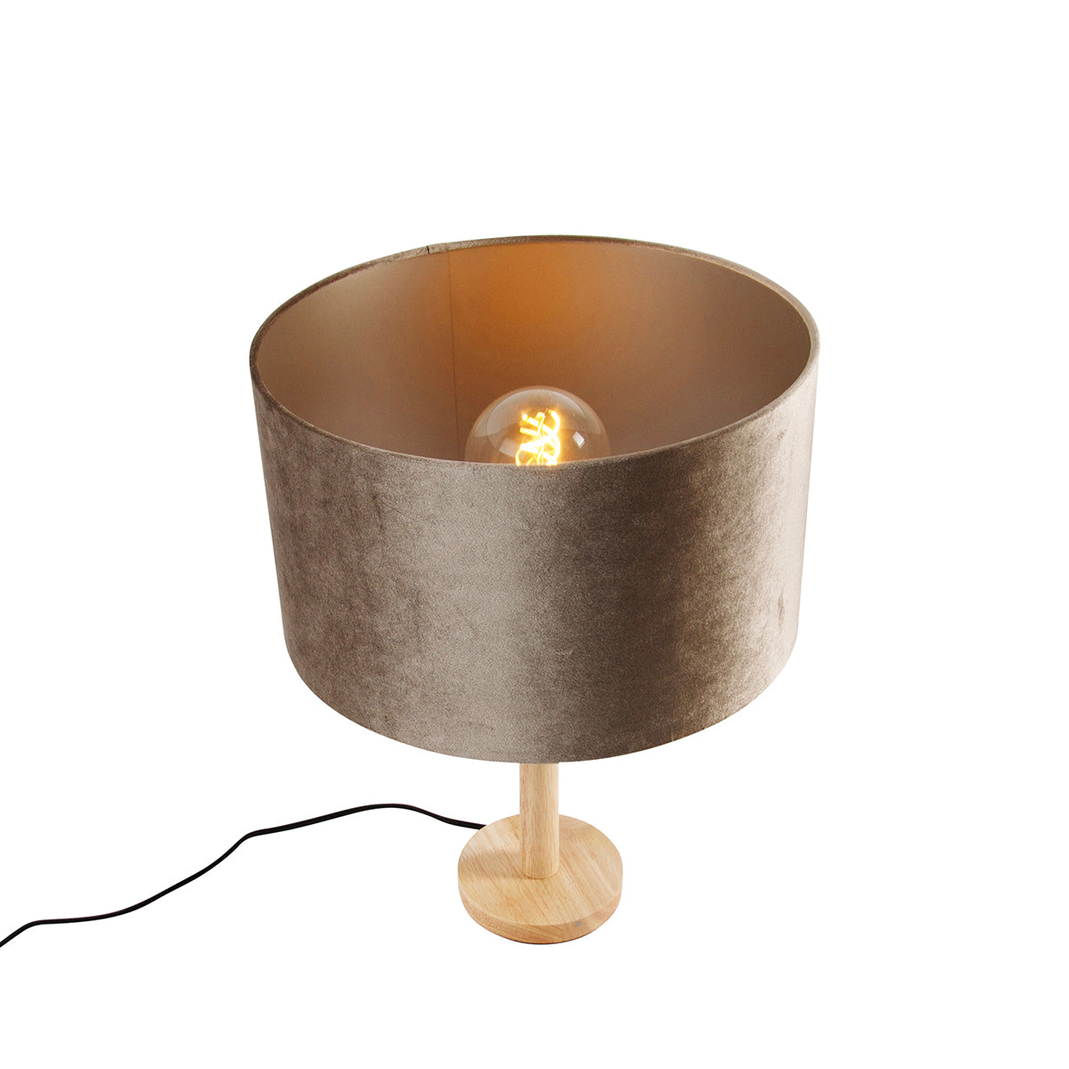 QAZQA Tafellamp hout met velours kap taupe 35cm - Mels