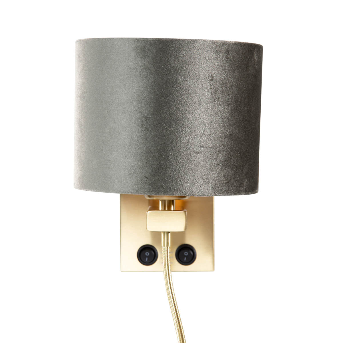 QAZQA Wandlamp brons met velours kap groen 18cm - Brescia